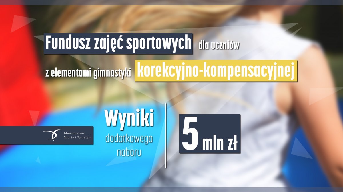 W 2017 roku na zajęcia sportowe dla uczniów z elementami gimnastyki korekcyjno – kompensacyjnej zaplanowano w budżecie MSiT kwotę w wysokości 5 mln zł. ze środków Funduszu Zajęć Sportowych dla Uczniów. W wyniku przeprowadzonych dwóch naborów wniosków rozdysponowano pełną kwotę przeznaczoną na realizację zadania w 2017 r. Dofinansowano 128 podmiotów (jednostki samorządu terytorialnego, kluby sportowe oraz inne organizacje pozarządowe).