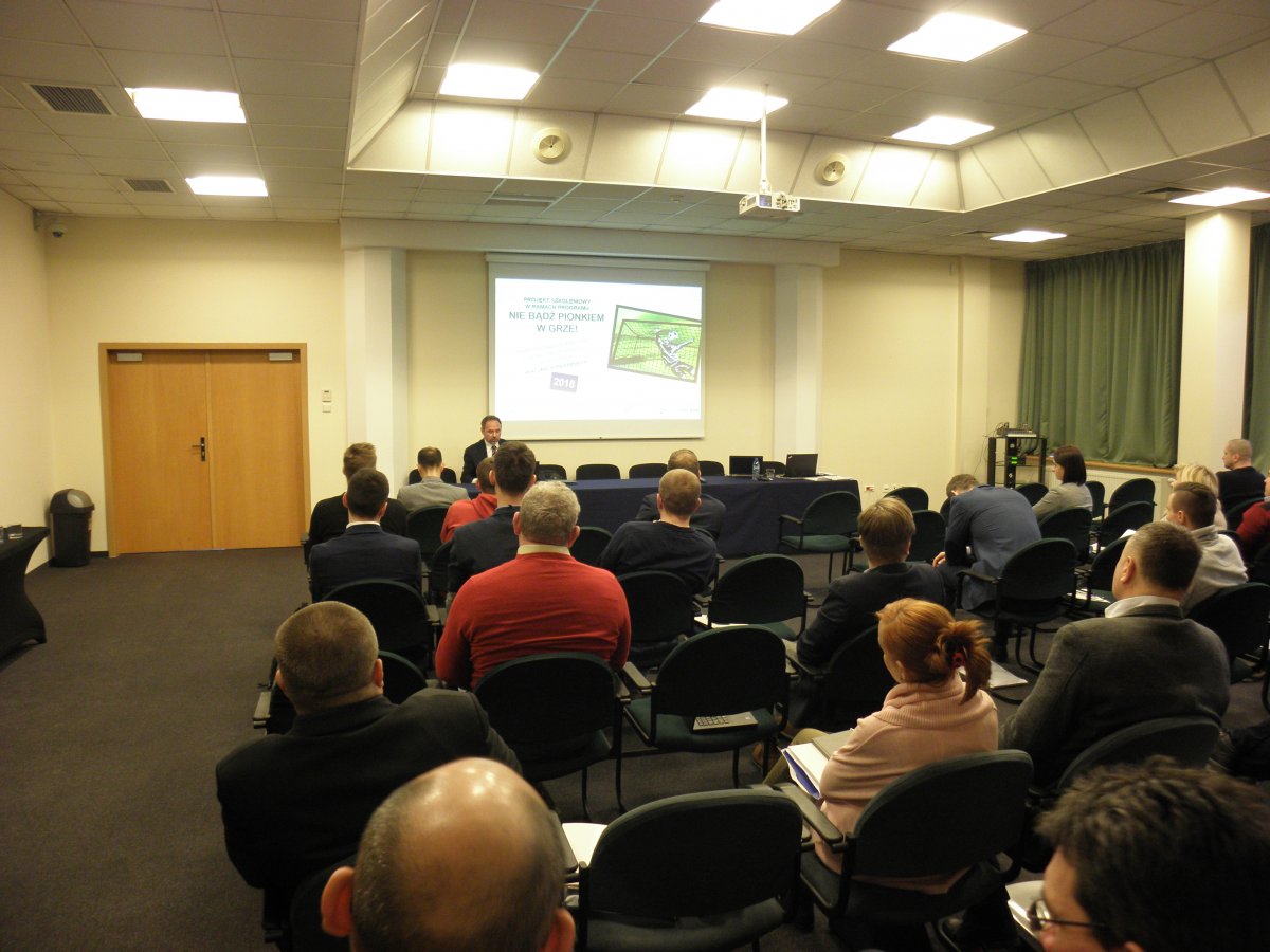 W szkoleniu wzięli udział koordynatorzy projektu, którzy na co dzień pracują w klubach piłkarskich najwyższych klas rozgrywkowych tj. Ekstraklasa, I oraz II liga, a także w Komendach Wojewódzkich Policji i wojewódzkich związkach piłki nożnej.