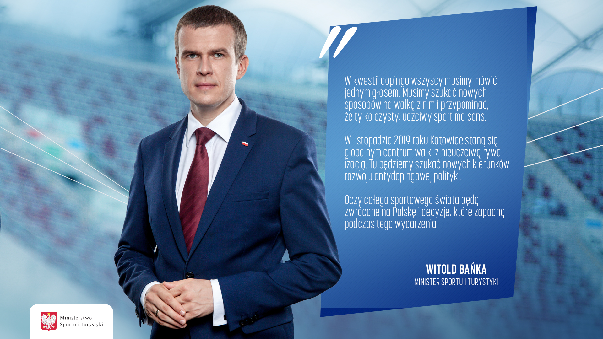 - W kwestii dopingu wszyscy musimy mówić jednym głosem. Musimy szukać nowych sposobów na walkę z nim i przypominać, że tylko czysty, uczciwy sport ma sens. W listopadzie 2019 roku Katowice staną się globalnym centrum walki z nieuczciwą rywalizacją. Tu będziemy szukać nowych kierunków rozwoju antydopingowej polityki. Konferencja odbędzie się przed Letnimi Igrzyskami Olimpijskimi w Tokio. Oczy całego sportowego świata będą zwrócone na Polskę i decyzje, które zapadną podczas tego wydarzenia – mówi Minister Sportu i Turystyki, Witold Bańka, który jest przedstawicielem Rady Europy w Komitecie Wykonawczym WADA.