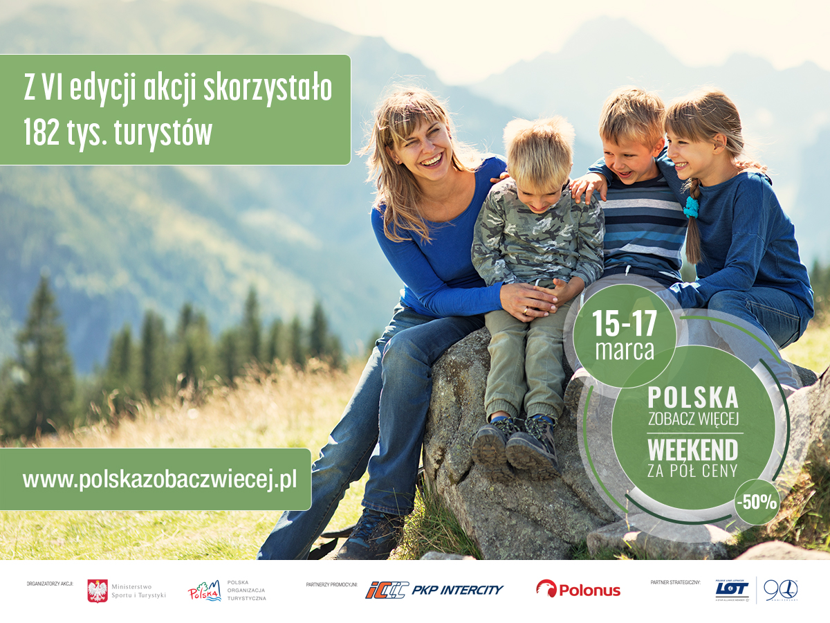 Następna edycja „POLSKA ZOBACZ WIĘCEJ – WEEKEND ZA PÓŁ CENY” już w weekend od 22 do 24 listopada 2019 r. Więcej informacji znajduje się na stronie internetowej www.polskazobaczwiecej.pl.