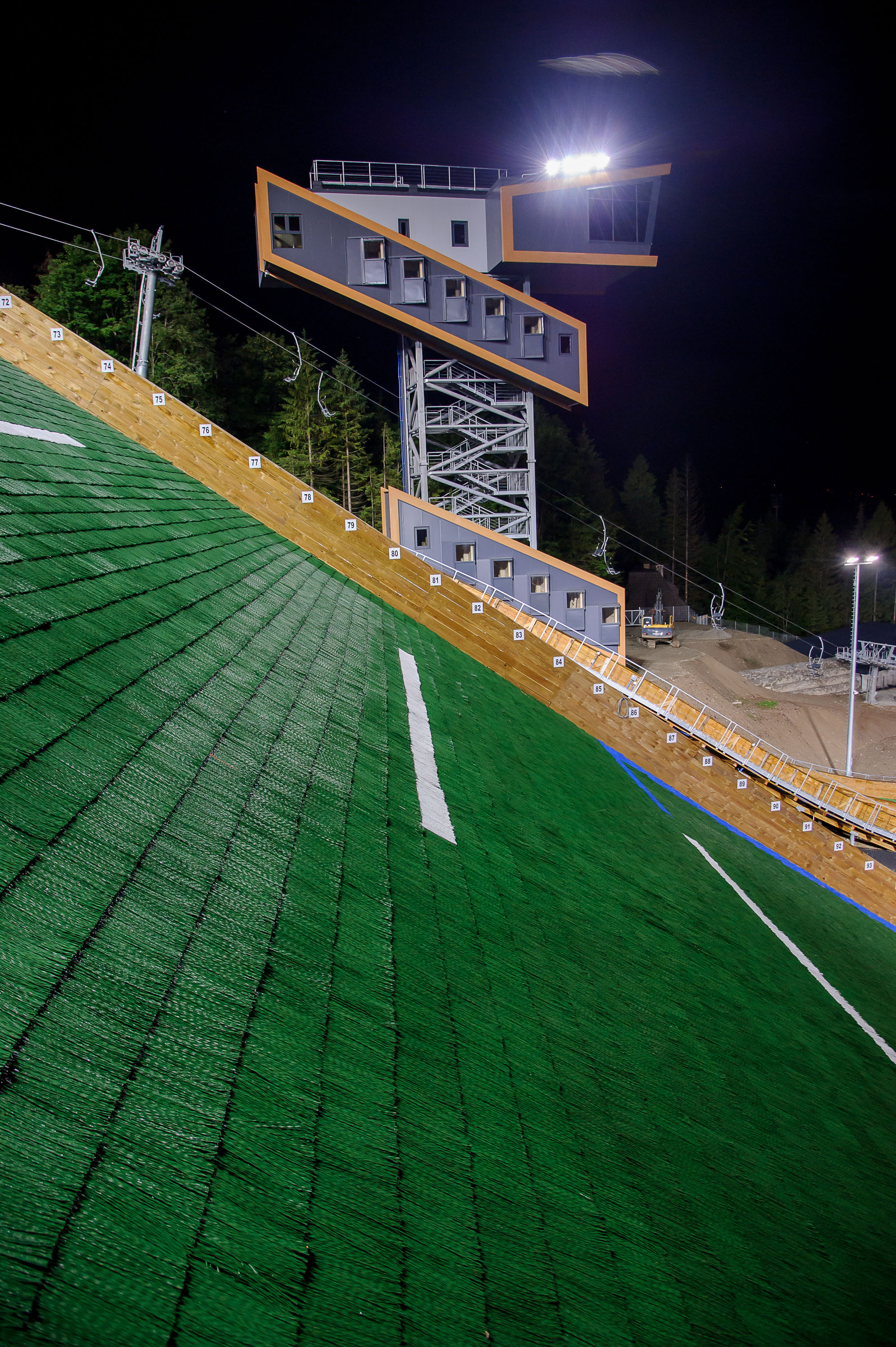 Trenujący skoczkowie korzystać będą mogli ponadto z nowej kolei linowej oraz całej infrastruktury towarzyszącej wraz z zapleczem szatniowym. Kompleks wyposażony został w oświetlenie z podziałem na poszczególne skocznie, zainstalowano także system sztucznego naśnieżania. Obiekt spełnia dzięki temu zarazem wszelkie niezbędne wymogi Międzynarodowej Federacji Narciarskiej (FIS).