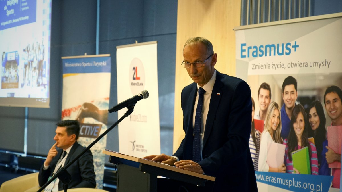 Wydarzenie otworzył Pan Jan Widera, Podsekretarz Stanu w Ministerstwie Sportu i Turystyki, który wyraził satysfakcję, że coraz więcej organizacji sięga po środki unijne w obszarze sportu. Po nim wystąpił Pan Paweł Poszytek, Dyrektor Generalny Fundacji Rozwoju Systemu Edukacji.