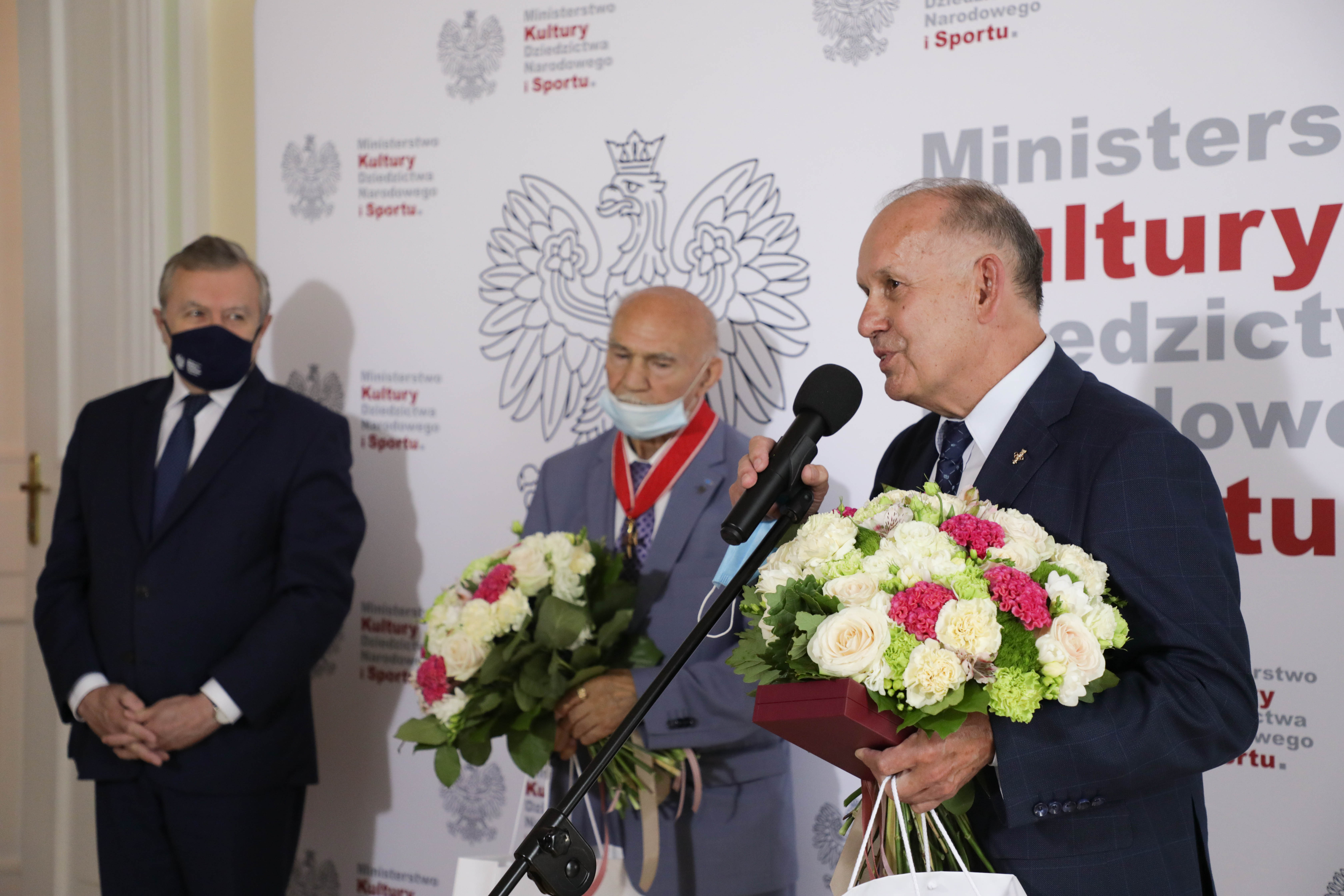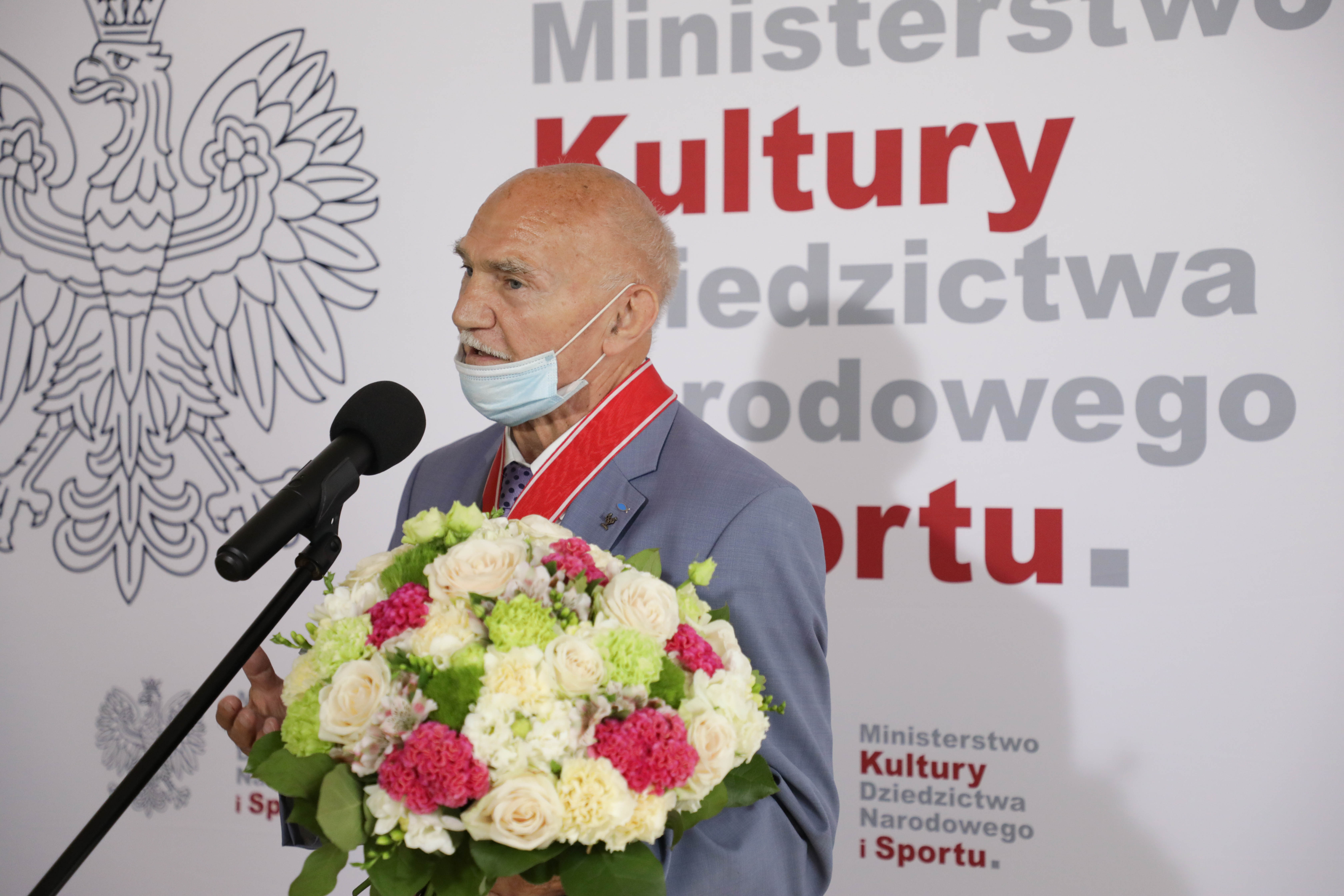 Marian Kasprzyk po uhonorowaniu Krzyżem Komandorskim Orderu Odrodzenia Polski, nadanym na wniosek ministra kultury, dziedzictwa narodowego i sportu przez prezydenta RP Andrzeja Dudę, podziękował za odznaczenie.