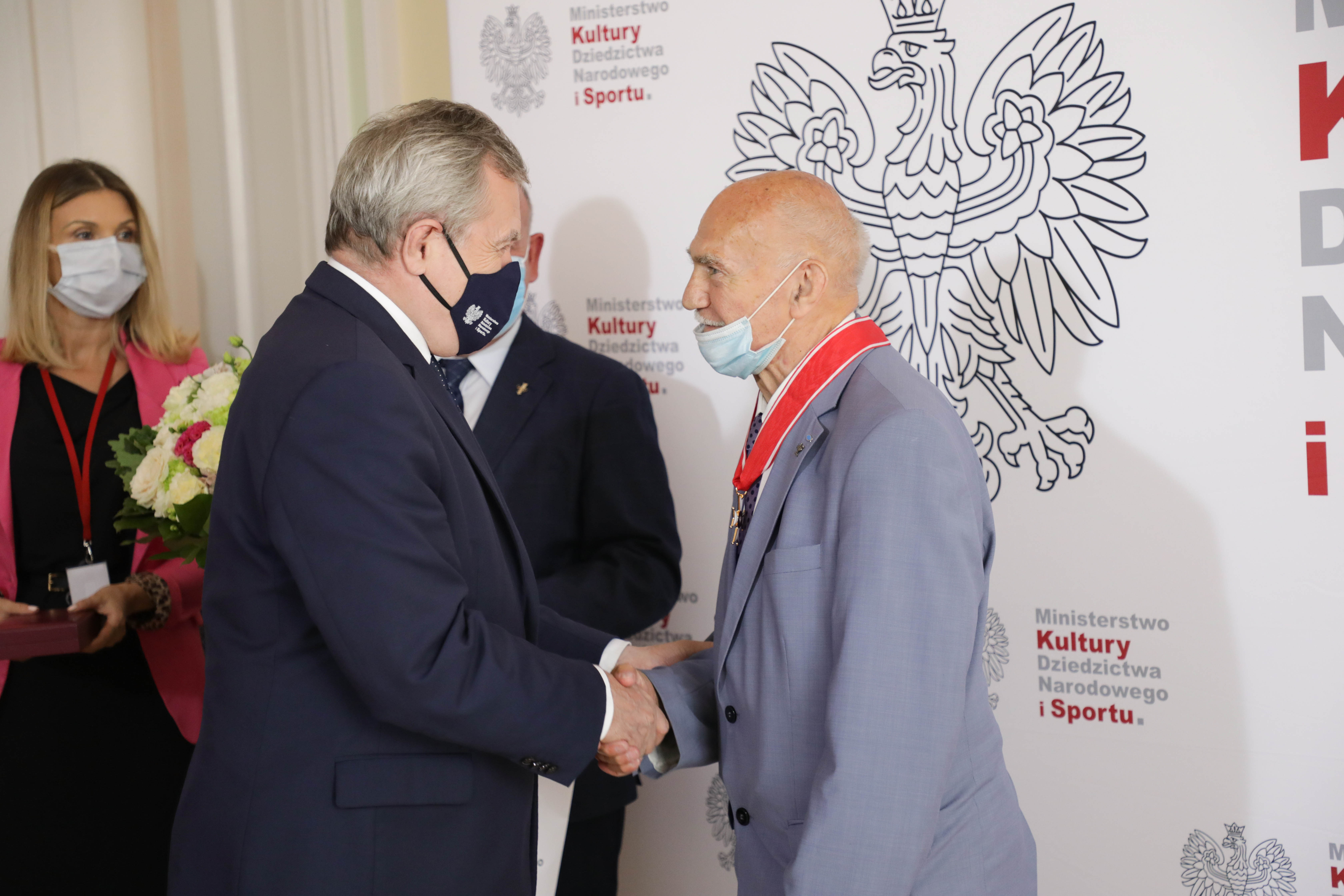 „W przeddzień rozpoczęcia igrzysk olimpijskich w Tokio obchodzimy niezwykłą uroczystość. Wracamy do Tokio, ale do tego sprzed 57 lat. W 1964 roku złote medale olimpijskie zdobyli Ewa Kłobukowska w sztafecie 4x100 metrów i Marian Kasprzyk w boksie” - powiedział wicepremier, minister kultury, dziedzictwa narodowego i sportu prof. Piotr Gliński podczas uroczystości wręczenia Krzyży Komandorskich Orderu Odrodzenia Polski za wybitne osiągnięcia sportowe oraz zasługi na rzecz krzewienia idei olimpijskiej.