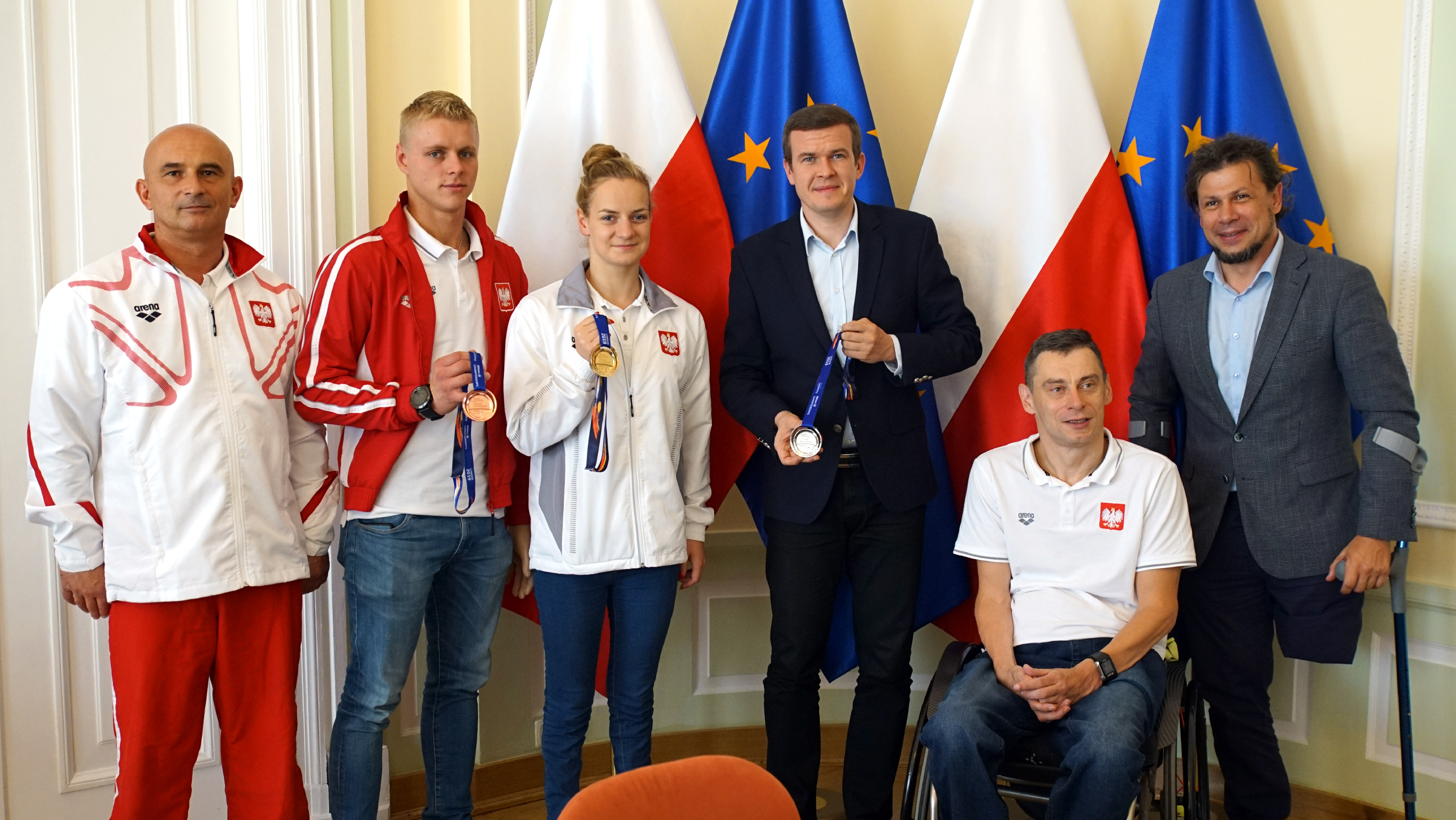 W czwartek 19 września br. w Ministerstwie Sportu i Turystyki odbyło się spotkanie z medalistami Mistrzostw Świata w Pływaniu osób z niepełnosprawnościami. Zawodnikom złożyli gratulacje minister Witold Bańka oraz dyrektor Departamentu Sportu Wyczynowego Marcin Nowak. W wydarzeniu uczestniczyli również trener Wojciech Seidel i Prezes Polskiego Komitetu Paraolimpijskiego Łukasz Szeliga.