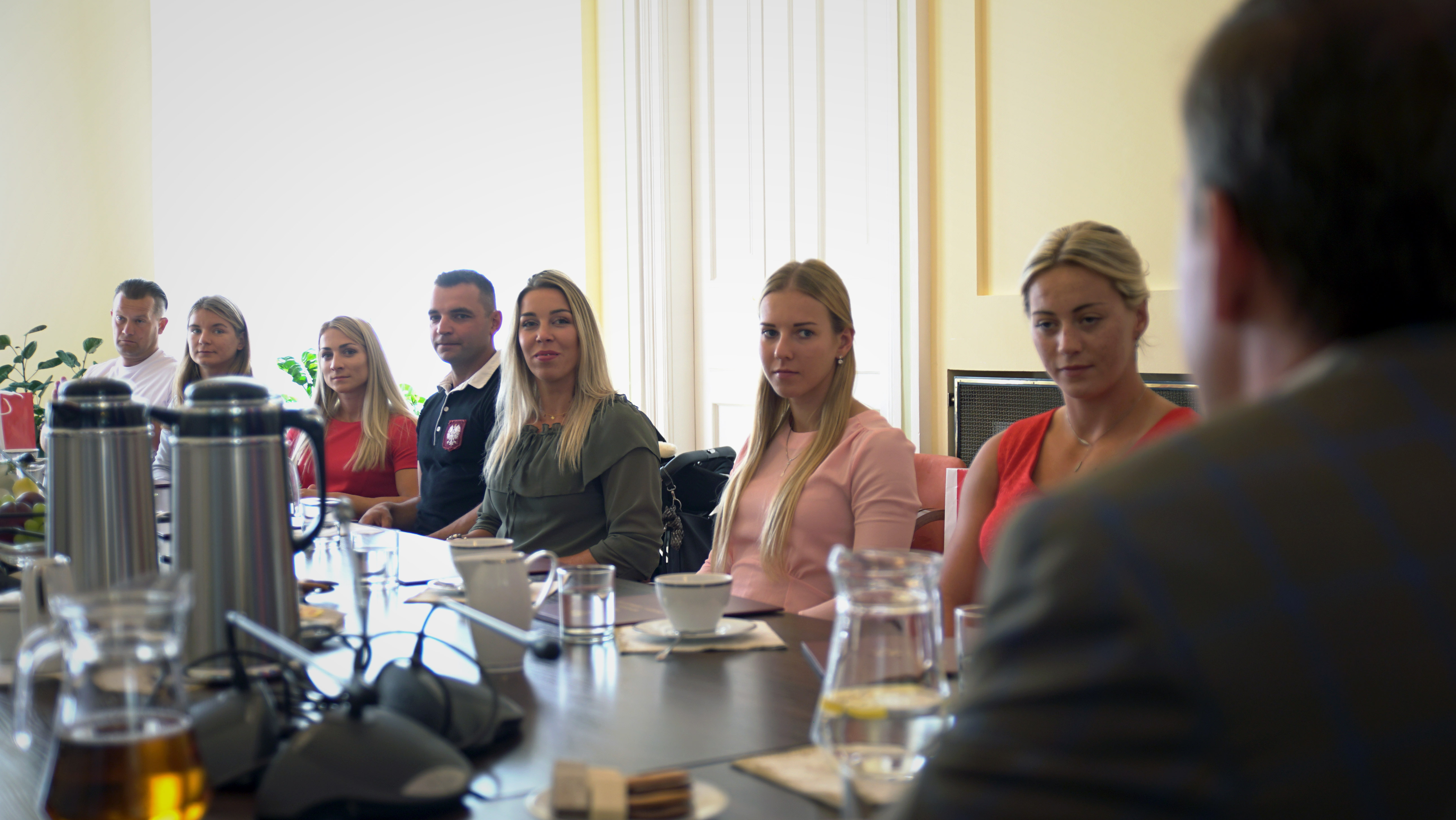 W czwartek 30 sierpnia br. w Ministerstwie Sportu i Turystyki odbyło się spotkanie ministra Witolda Bańki z medalistami Mistrzostw Świata w Sprincie Kajakowym. W wydarzeniu, oprócz zawodników, uczestniczyli również trenerzy: Maciej Juhnke, Mariusz Szałkowski, Michał Śliwiński, Łukasz Woszczyński oraz Prezes PZKaj – Tadeusz Wróblewski i Dyrektor DSW MSiT – Marcin Nowak