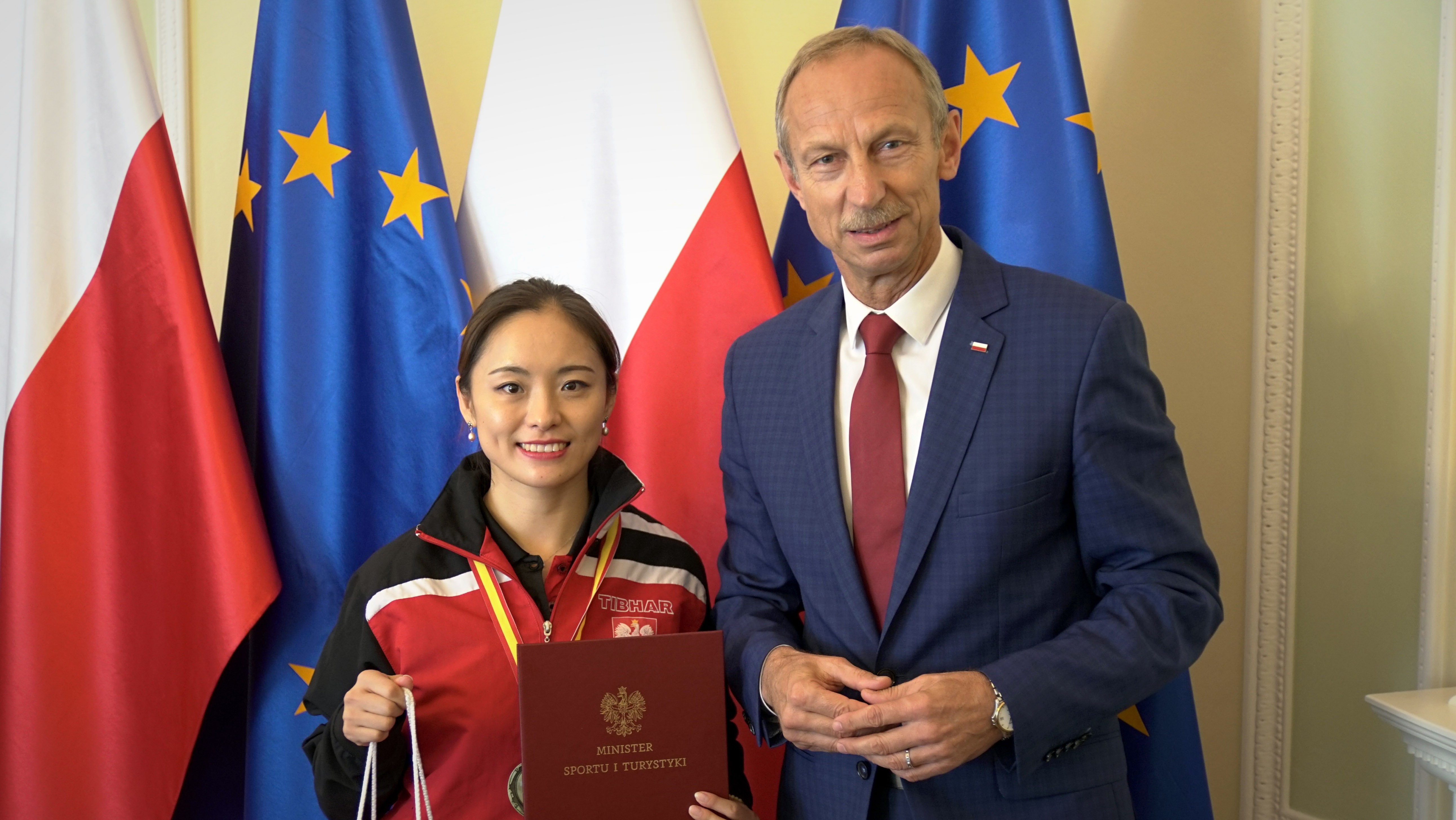W wtorek 25 września 2018 r. wiceminister Jan Widera gościł w siedzibie MSiT medalistki Mistrzostw Europy w tenisie stołowym: Li Qian oraz Katarzynę Grzybowską-Franc. W spotkaniu uczestniczyli również: p. Zbigniew Nęcek - trener kadry narodowej seniorek, p. Kinga Stefańska - asystentka trenera, p. Dariusz Szumacher - prezes Polskiego Związku Tenisa Stołowego, p. Zbigniew Leszczyński - wiceprezes ds. sportowych oraz p. Marcin Nowak- dyrektor Departamentu Sportu Wyczynowego MSiT.