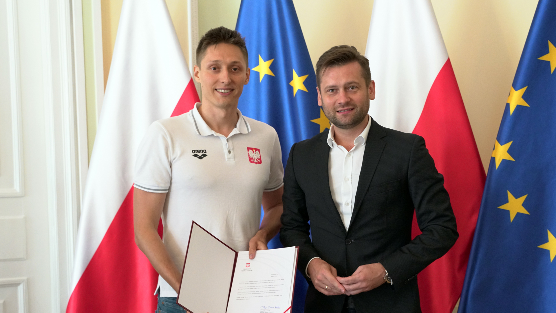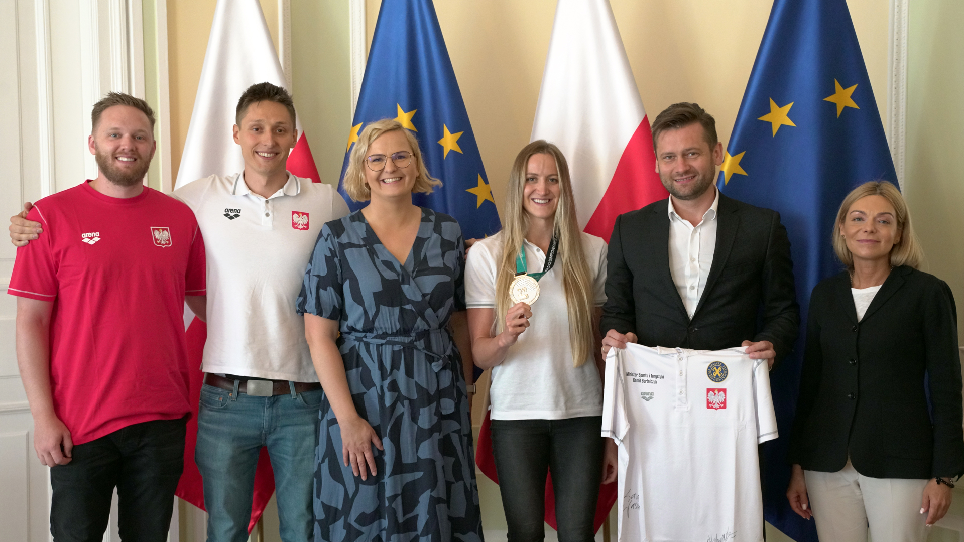 Minister Kamil Bortniczuk spotkał się z Katarzyną Wasick, srebrną medalistką MŚ w pływaniu – Budapeszt 2022