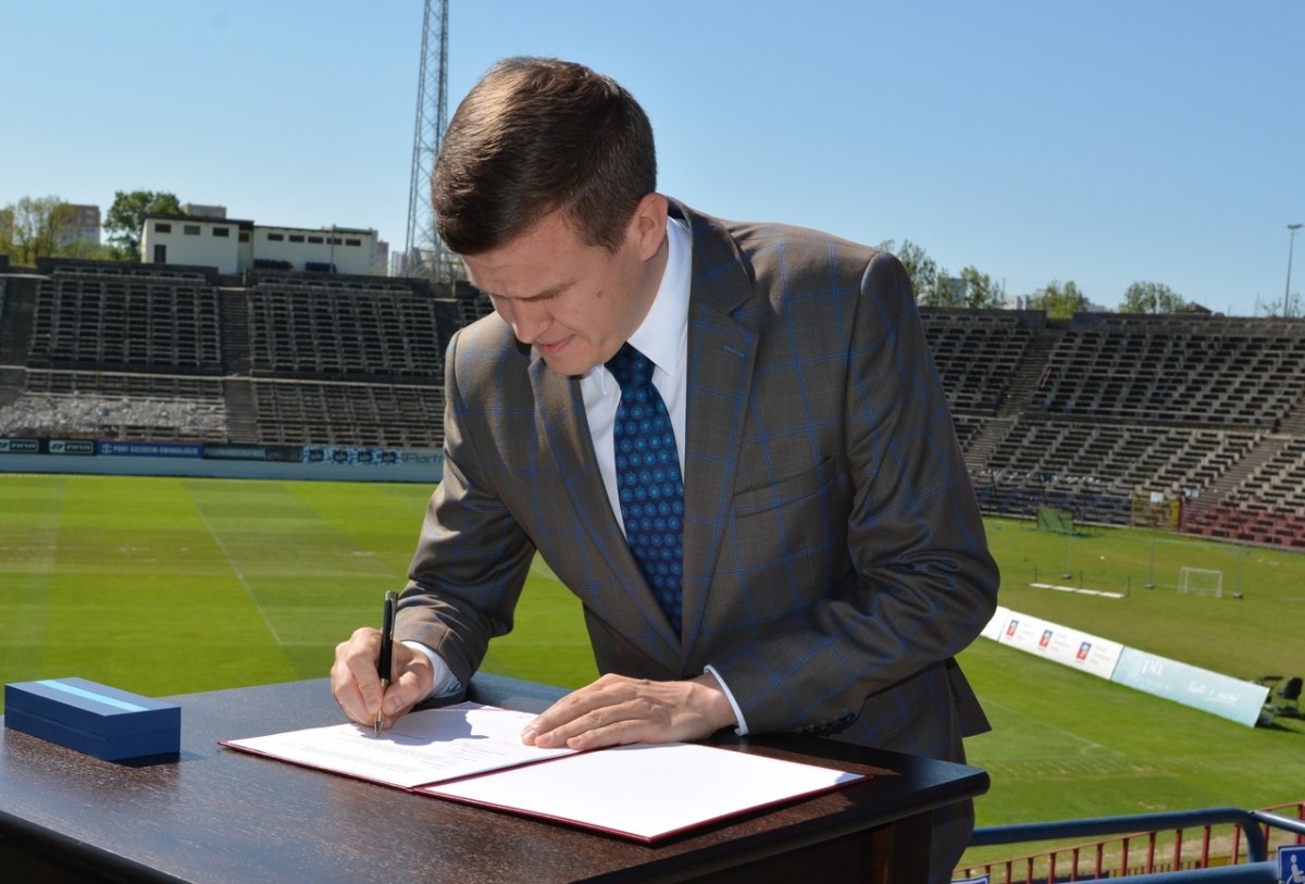 We wtorek 30 kwietnia 2019 roku Minister Sportu i Turystyki przebywał z wizytą w województwie zachodniopomorskim. Podczas delegacji minister Witold Bańka podpisał umowę na dofinansowanie budowy Centrum Szkolenia Dzieci i Młodzieży w ramach przebudowy i rozbudowy Stadionu Miejskiego im. Floriana Krygiera w Szczecinie kwotą 30 mln zł w ramach „Programu inwestycji o szczególnym znaczeniu dla sportu”. W uroczystości uczestniczyli również Minister Spraw Wewnętrznych i Administracji Joachim Brudziński, Prezydent Szczecina Piotr Krzystek, Wojewoda Zachodniopomorski Tomasz Hinc oraz Wicewojewoda Zachodniopomorski Marek Subocz.