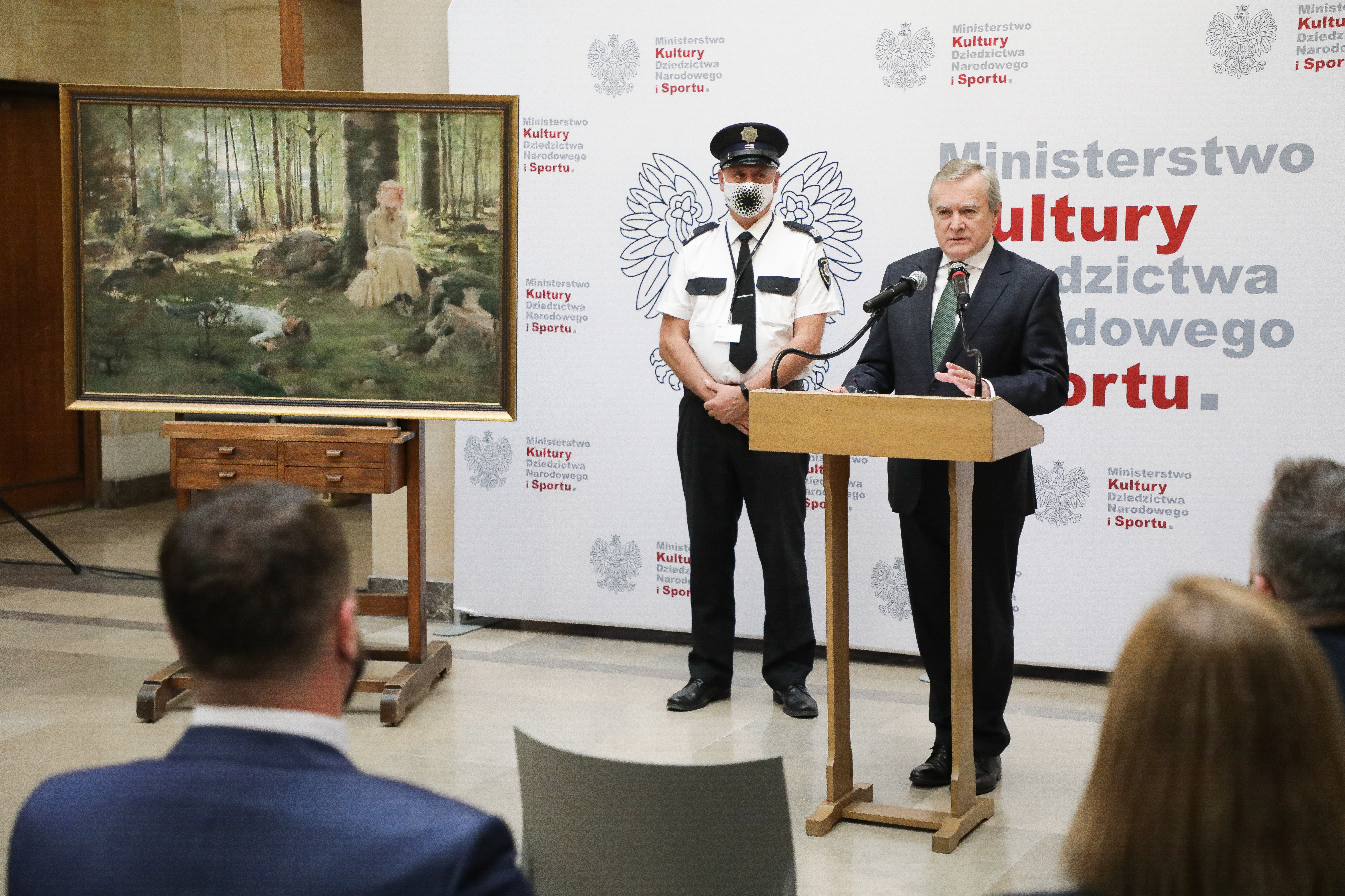 „W wyniku II wojny światowej Polska straciła ponad pół miliona dzieł sztuki. Od wielu lat w sposób systematyczny staramy się odzyskiwać te dzieła. W tej chwili toczy się ponad 80 procesów restytucyjnych, które są na różnych etapach. W najbliższym czasie takich spotkań będzie więc jeszcze więcej. Historia każdego z tych dzieł jest inna. Dzisiaj mamy do czynienia z idealnym podejściem do sprawy, ale też szczególną historią obrazu” - powiedział wicepremier, minister kultury, dziedzictwa narodowego i sportu prof. Piotr Gliński podczas uroczystości prezentacji i przekazania do zbiorów Muzeum Narodowego w Warszawie utraconej straty wojennej. Zaginiony w czasie II wojny światowej obraz olejny fińskiego malarza Alberta Edelfelta „Pod brzozami / Dzieci w lesie brzozowym nad fiordem Haiko” z 1882 roku trafił do MNW dzięki staraniom Ministerstwa Kultury, Dziedzictwa Narodowego i Sportu.