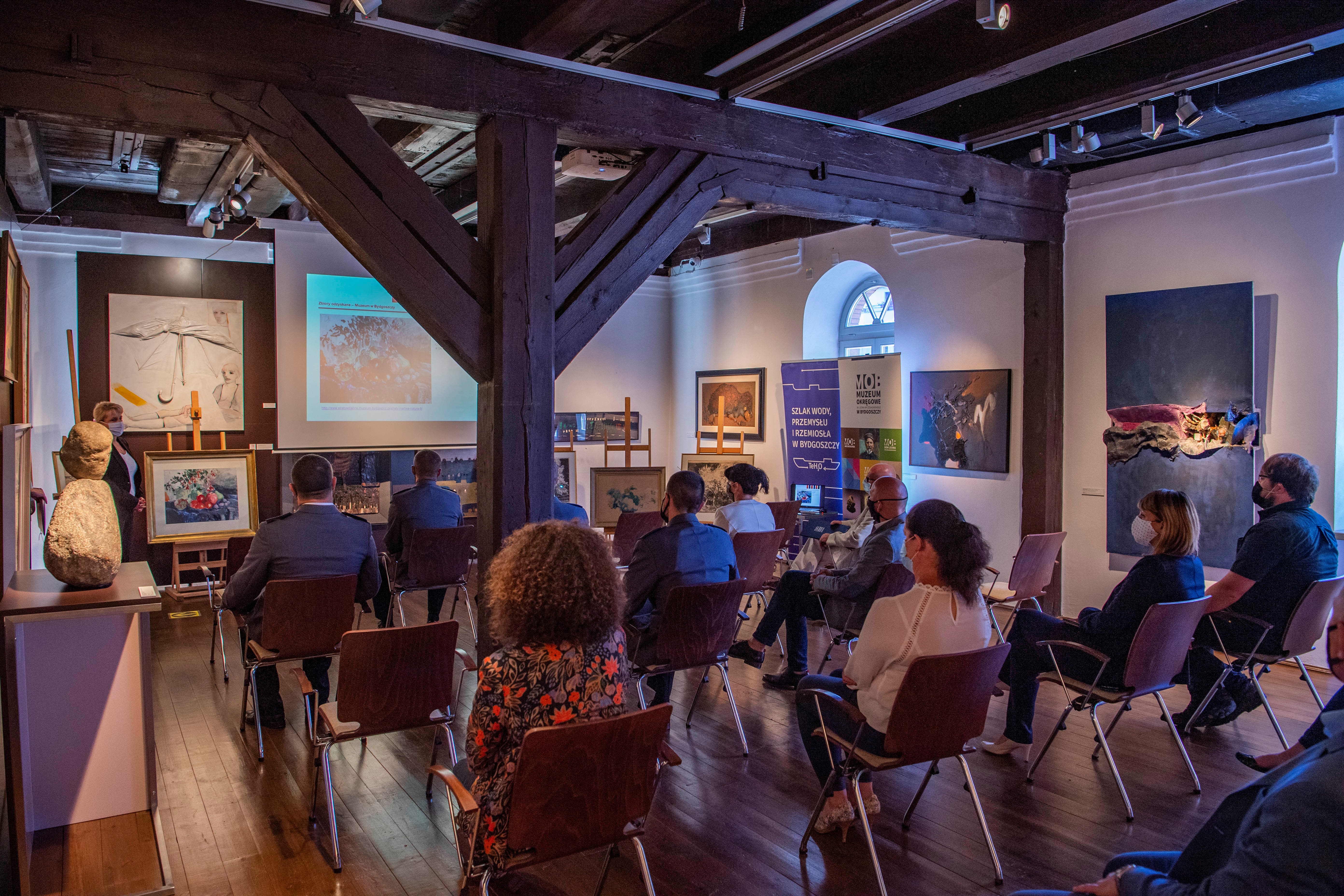 W uroczystości, która odbyła się 5 sierpnia br., udział wzięli m.in.: Wacław Kuczma - Dyrektor Muzeum Okręgowego w Bydgoszczy, prof. Dariusz Markowski – kierownik Zakładu Konserwacji i Restauracji Sztuki Nowoczesnej Wydziału Sztuk Pięknych w Toruniu (autor pozycji naukowych z dziedziny konserwatorstwa, a także ekspertyz i opinii konserwatorskich, z którego specjalistycznej wiedzy organa ścigania korzystały w toku śledztwa), insp. Mirosław Elszkowski – Pierwszy Zastępca Komendanta Wojewódzkiego Policji w Bydgoszczy, a także prokurator Violetta Głowacka – Zastępca Prokuratora Okręgowego w Bydgoszczy, będąca jednocześnie prokuratorem nadzorującym oba śledztwa, w toku których odzyskano prezentowane dzieła.