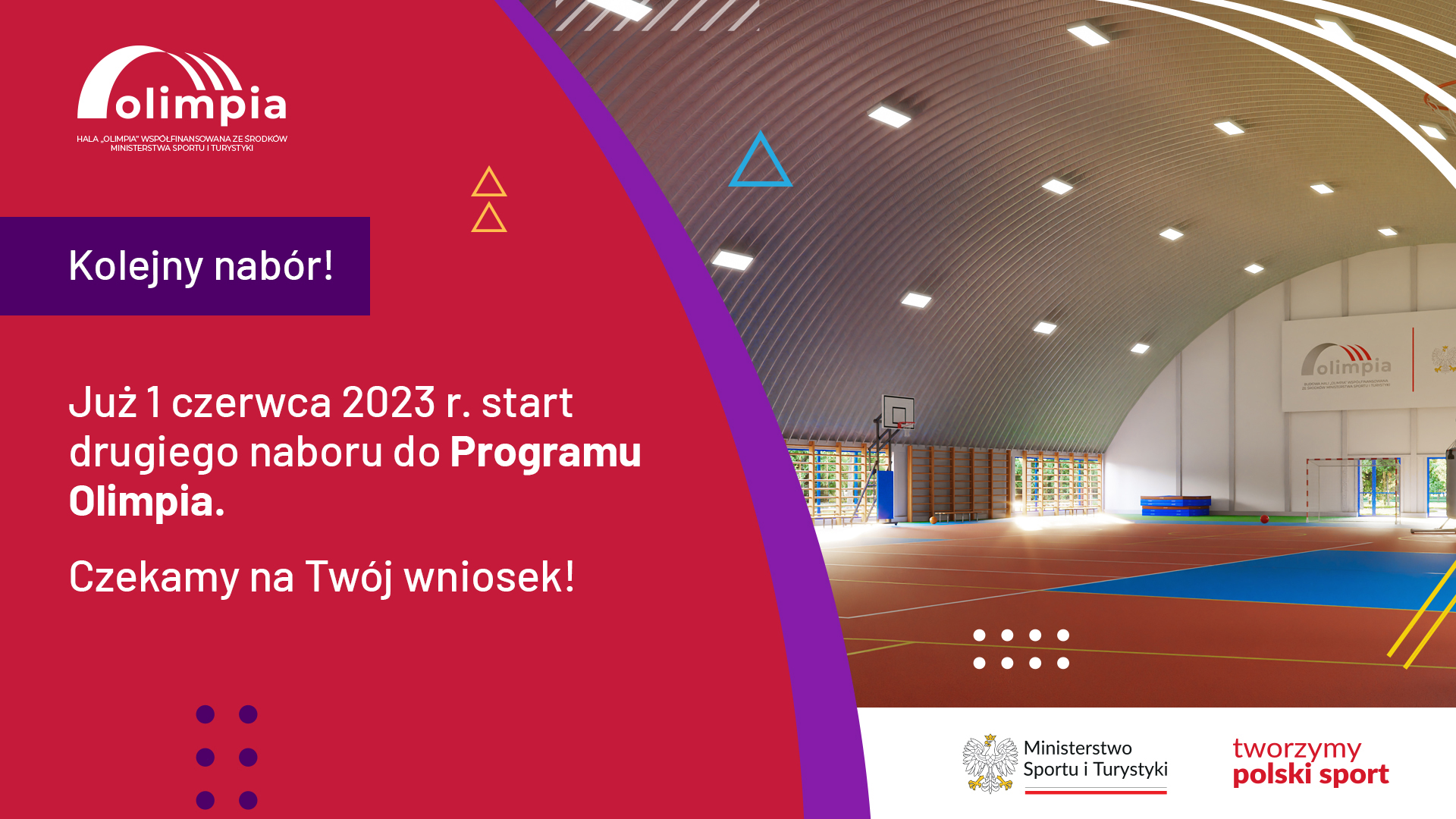Wnioski na realizację przyszkolnych hal z Programu Olimpia będzie można składać od 1 do 30 czerwca 2023 r. Nabór odbędzie się na identycznych zasadach jak pierwsza tura.