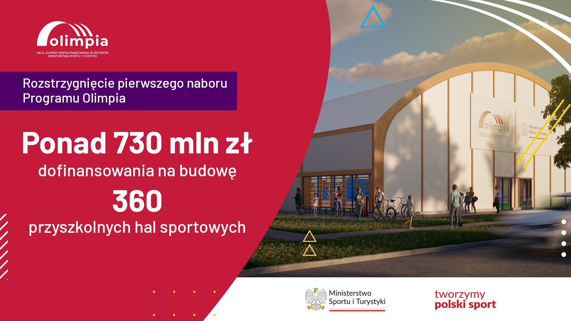 W ramach pierwszego naboru do Programu budowy przyszkolnych hal sportowych na 100-lecie występów reprezentacji Polski na Igrzyskach Olimpijskich minister sportu i turystyki Kamil Bortniczuk podjął decyzję o dofinansowaniu budowy 360 hal kwotą ponad 730 mln zł.