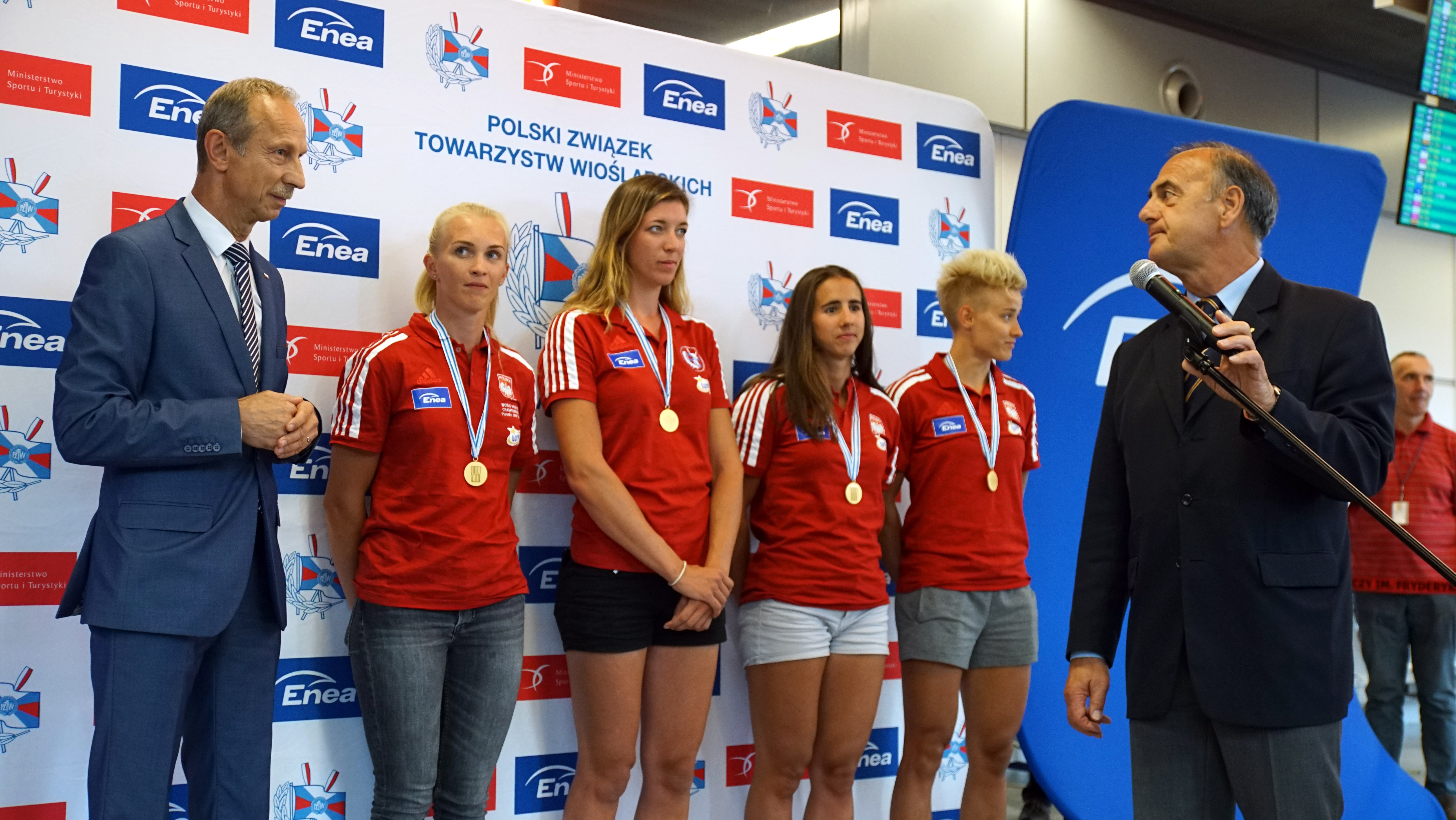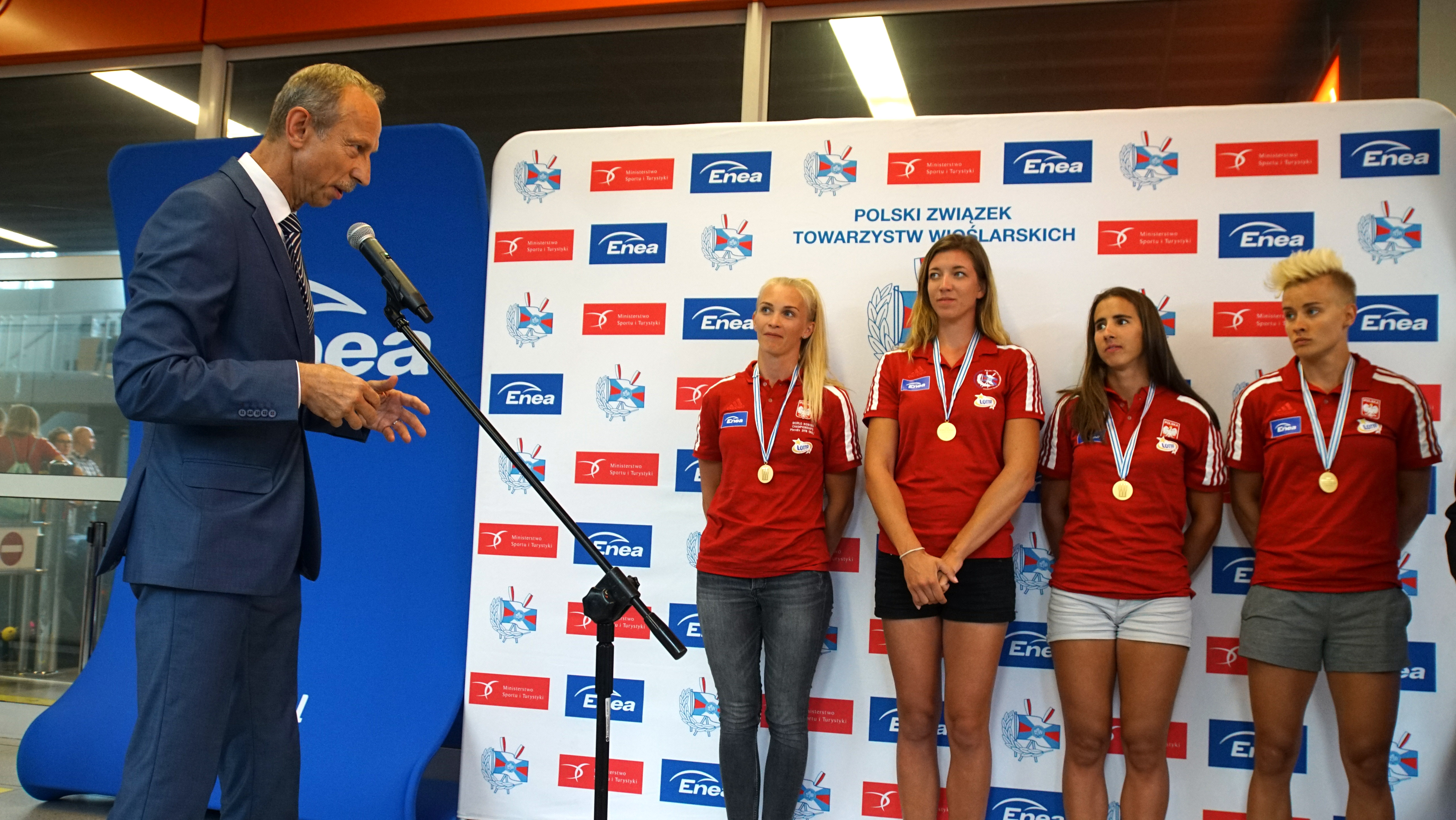 Podsekretarz Stanu Jan Widera powitał w Warszawie złote medalistki wioślarskich MŚ w Płowdiw