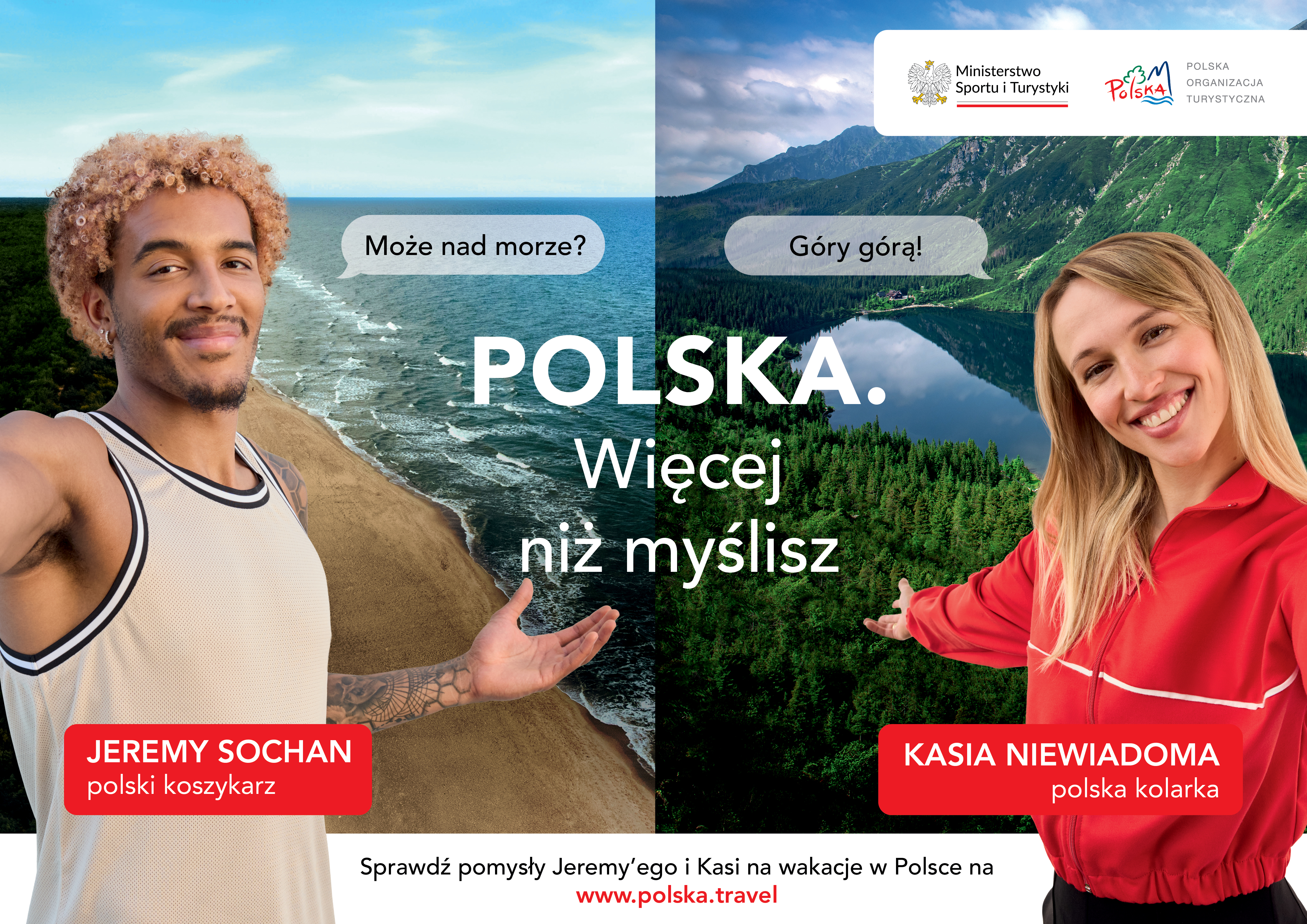 Wystartowała nowa kampania promująca Polskę za granicą. W projekcie „Polska. Więcej niż myślisz” biorą udział popularni polscy sportowcy: kolarka, zwyciężczyni Tour de France, Katarzyna Niewiadoma i koszykarz grający w lidze NBA, Jeremy Sochan. Kampania została przygotowana przez Polską Organizację Turystyczną we współpracy z Ministerstwem Sportu i Turystyki.