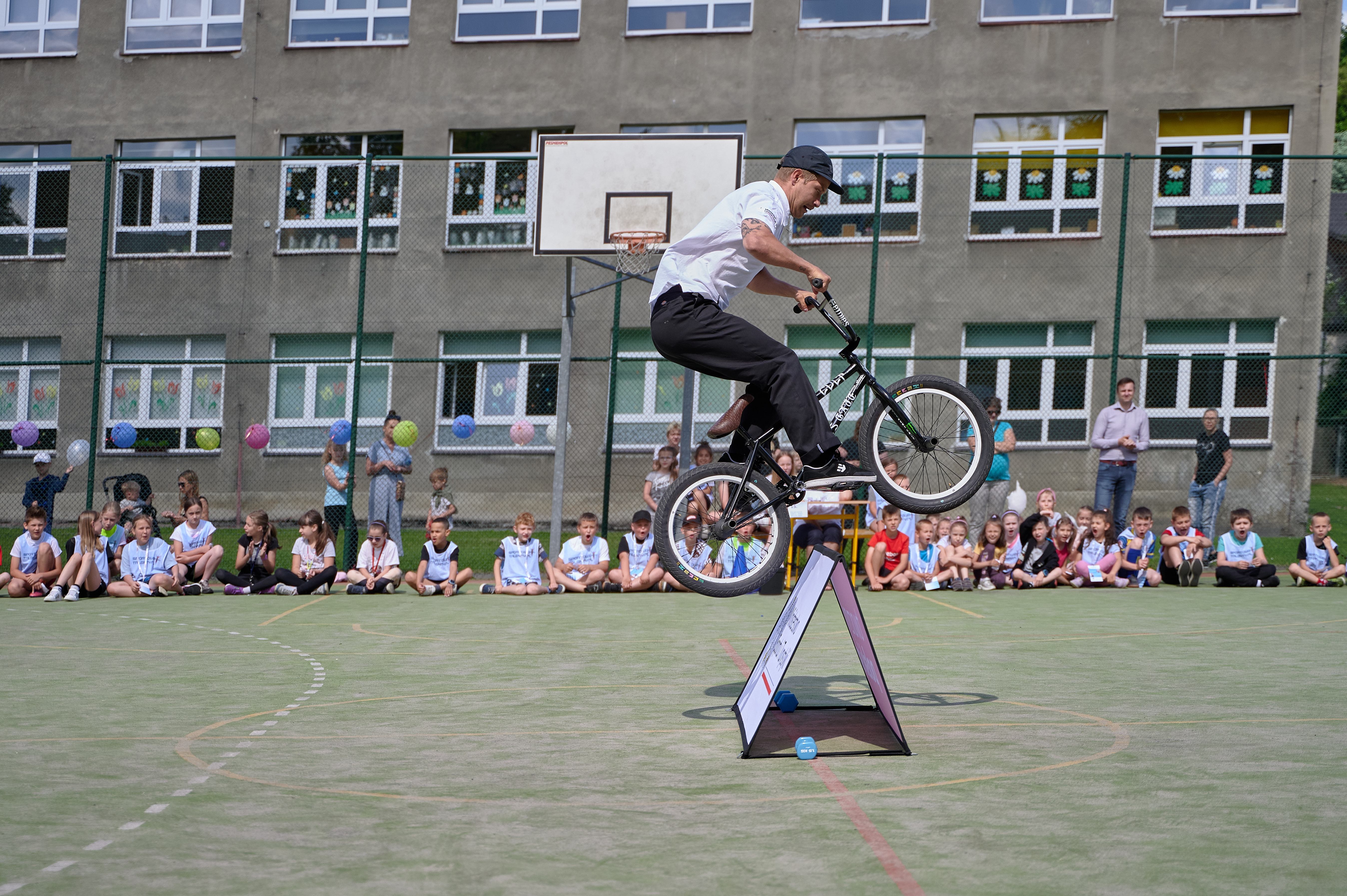 Nie zabrakło oczywiście solidnej dawki aktywności fizycznej. Po pokazach BMX freestyle odbyły się treningi dzieci pod okiem wykwalifikowanej kadry trenerskiej oraz testy sprawnościowe i zabawy sportowe w grupach. Program „Sportowe Talenty” zakłada wykonanie czterech podstawowych testów sprawnościowych określonych przez metodyków: skoczność, szybkość, wytrzymałość i siłę. Testy, w tym beep-test, 10x5 m, test planka, skok w dal z miejsca - znajdą się w podstawie programowej dla szkół. Szkoły otrzymały także pakiety sprzętu sportowego do przeprowadzania zajęć w ramach programu.