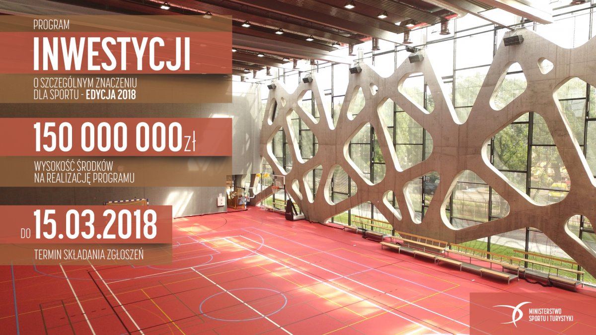 Celem „Programu inwestycji o szczególnym znaczeniu dla sportu” jest rozwój bazy obiektów sportowych służących potrzebom polskiego sportu wyczynowego. Inwestycje dotyczą budowy, przebudowy lub remontów obiektów specjalistycznych, spełniających standardy międzynarodowe, mogących stać się areną ważnych zawodów i imprez sportowych rangi ogólnopolskiej, europejskiej czy światowej. Na jego realizację w roku 2018 MSiT zaplanowało kwotę 150 mln zł (nowe i kontynuowane zadania inwestycyjne).