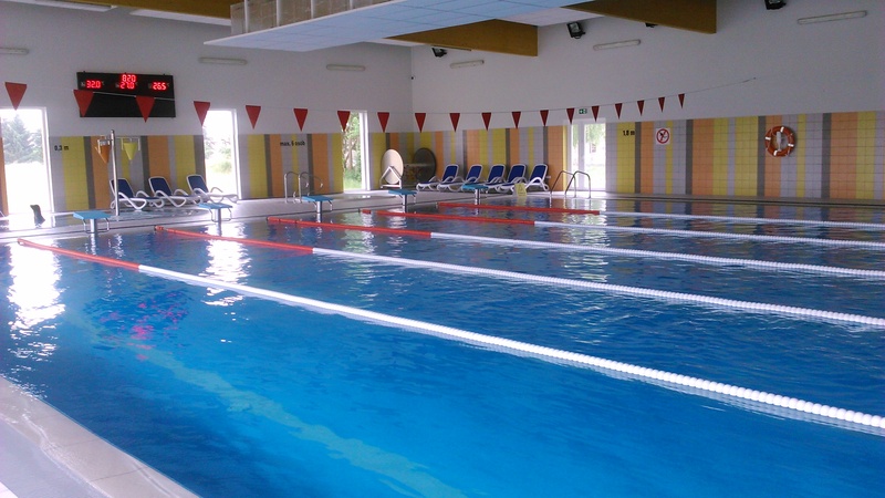 - nieckami: sportową o wymiarach 25 m x 16 m, rekreacyjno-treningową o wym. 5 m x16 m, urządzeniami odnowy biologicznej,