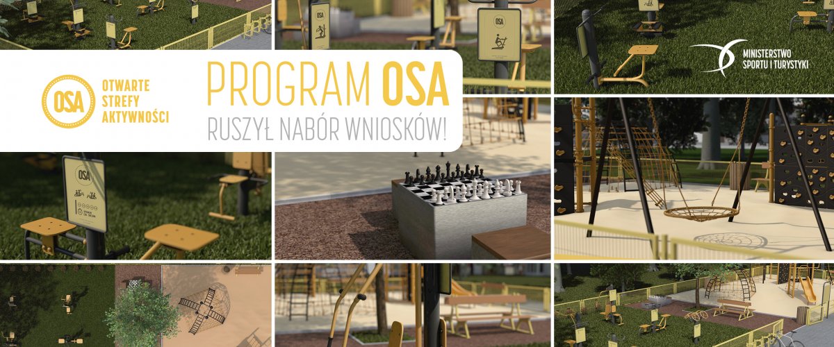 Otwarte Strefy Aktywności OSA to nowy program po raz pierwszy dedykowany w całości rozwojowi małej infrastruktury w Polsce. Celem Programu jest budowa ogólnodostępnych, wielofunkcyjnych, plenerowych stref aktywności, skierowanych do różnych grup wiekowych oraz tworzenie przestrzeni aktywności sportowej, sprzyjającej międzypokoleniowej integracji społecznej.