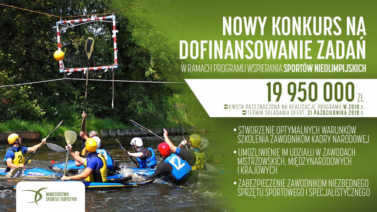 24 stycznia 2018 r. został ogłoszony „Program wspierania sportów nieolimpijskich poprzez dofinansowanie przygotowania i udziału zawodników we współzawodnictwie międzynarodowym w 2018 roku”, zgodnie z decyzją nr 13 Ministra Sportu i Turystyki. Zadania realizowane w Programie dotyczą przygotowań zawodników kadry narodowej do udziału w mistrzostwach świata i Europy w sportach nieolimpijskich. Na realizację Programu Minister w 2018 roku przeznacza kwotę ujętą w projekcie ustawy budżetowej na rok 2018 w wysokości 19 950 000 zł.