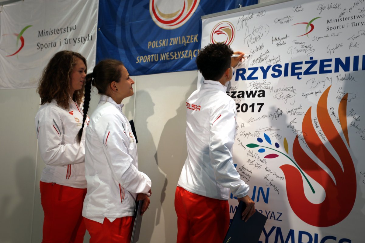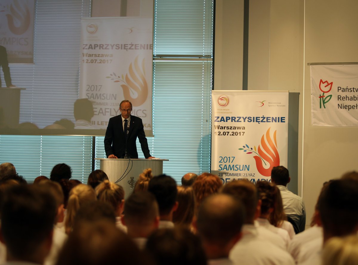 W środę 12 lipca w Centrum Olimpijskim Polskiego Komitetu Olimpijskiego odbyło się uroczyste zaprzysiężenie reprezentacji narodowej na XXIII Letnie Igrzyska Głuchych. Ministerstwo Sportu i Turystyki reprezentował Podsekretarz Stanu Jan Widera. W spotkaniu udział wzięli m.in. Szef Kancelarii Prezydenta RP Halina Szymańska, Prezes Polskiego Komitetu Olimpijskiego Andrzej Kraśnicki, Prezes Polskiego Komitetu Paraolimpijskiego Łukasz Szeliga, działacze Polskiego Związku Sportu Niesłyszących, tłumacze oraz grupa polskich sportowców z trenerami i sztabem medycznym.