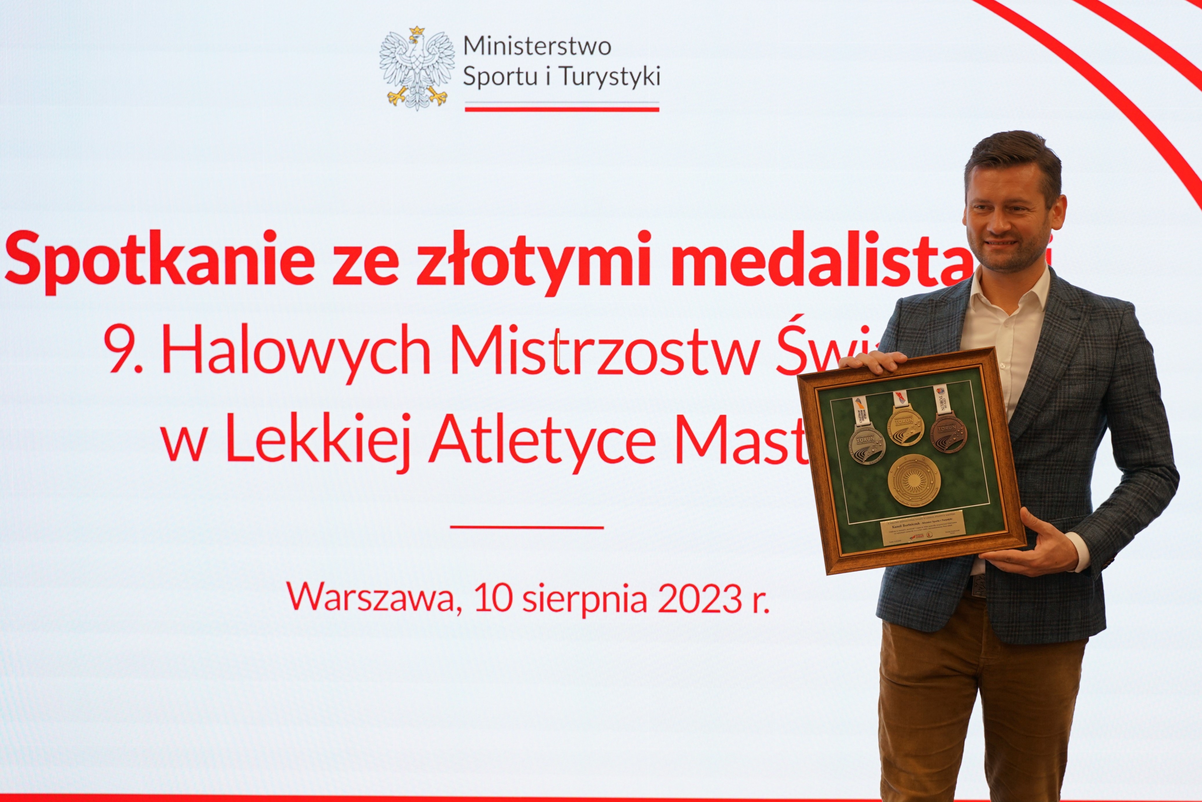 Minister sportu i turystyki Kamil Bortniczuk spotkał się ze złotymi medalistami 9. Halowych Mistrzostw Świata w Lekkiej Atletyce Masters. Zawody, które odbyły się w Arenie Toruń, były popisem polskich sportowców, którzy od lat należą do światowej czołówki w tej kategorii. Biało-czerwoni wywalczyli łącznie 202 medale i wygrali klasyfikację generalną imprezy.