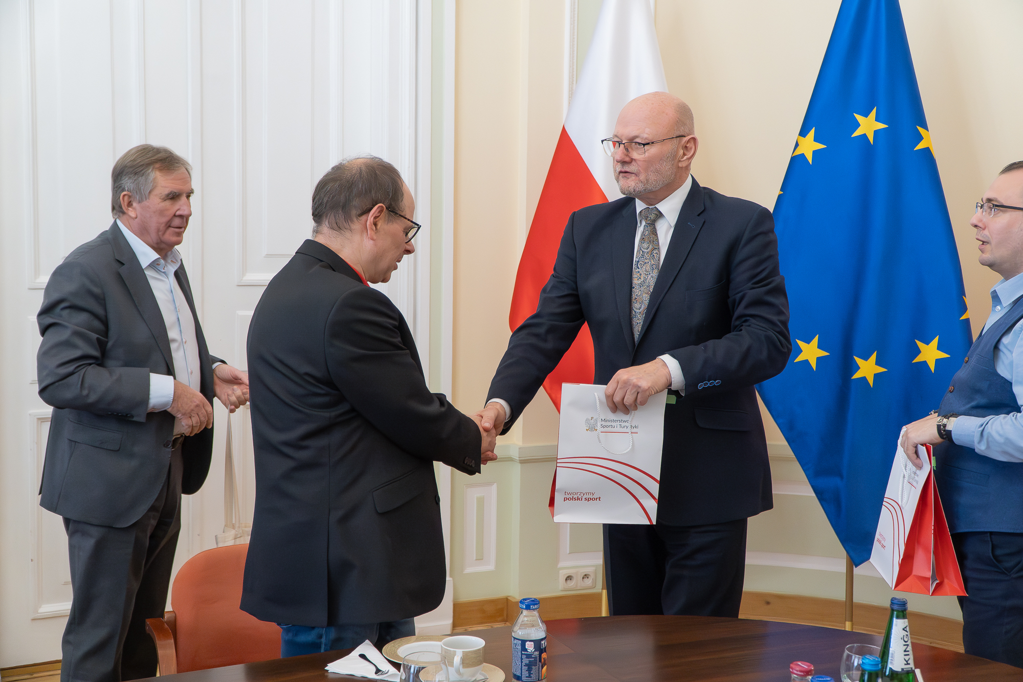 Na spotkaniu nie zabrakło również sportowych i brydżowych anegdot z zawodów w Buenos Aires. Na zakończenie wizyty brydżystów w MSiT, Minister Nalazek wręczył przybyłym gościom sportowe upominki.