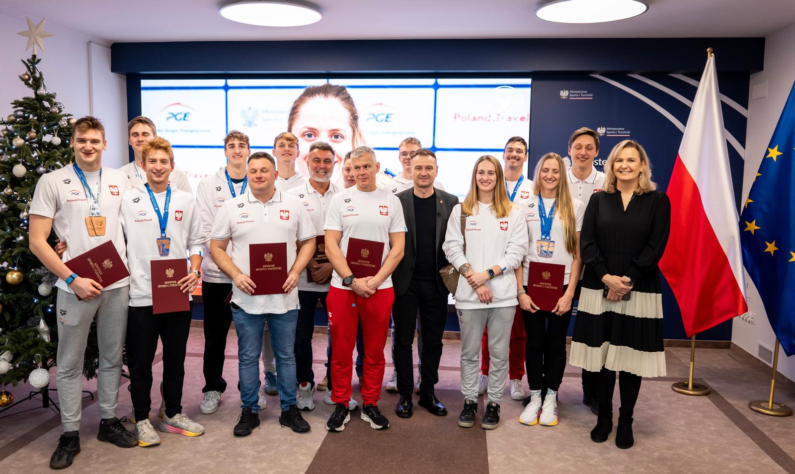 Spotkanie Ministra Sławomira Nitrasa z medalistami i uczestnikami mistrzostw świata w pływaniu