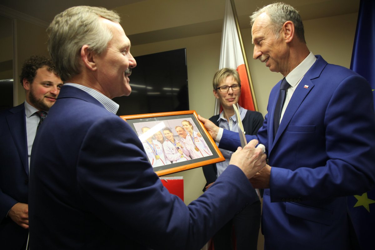 We wtorek 6 czerwca Jan Widera, Podsekretarz Stanu w MSiT spotkał się z medalistami Mistrzostw Europy Młodzieżowców, Mistrzostw Świata Juniorów i Kadetów, Mistrzostw Europy Juniorów i Kadetów, trenerami: Anną Medyńską-Tercjak, Krzysztofem Walką, Pawłem Kantorskim, Prezesem Polskiego Związku Szermierczego – Adamem Konopką i Dyrektorem Generalnym Związku Jackiem Słupskim. Wiceminister Widera pogratulował wszystkim zawodnikom wspaniałych wyników sportowych i wręczył pamiątkowe listy oraz drobne upominki.