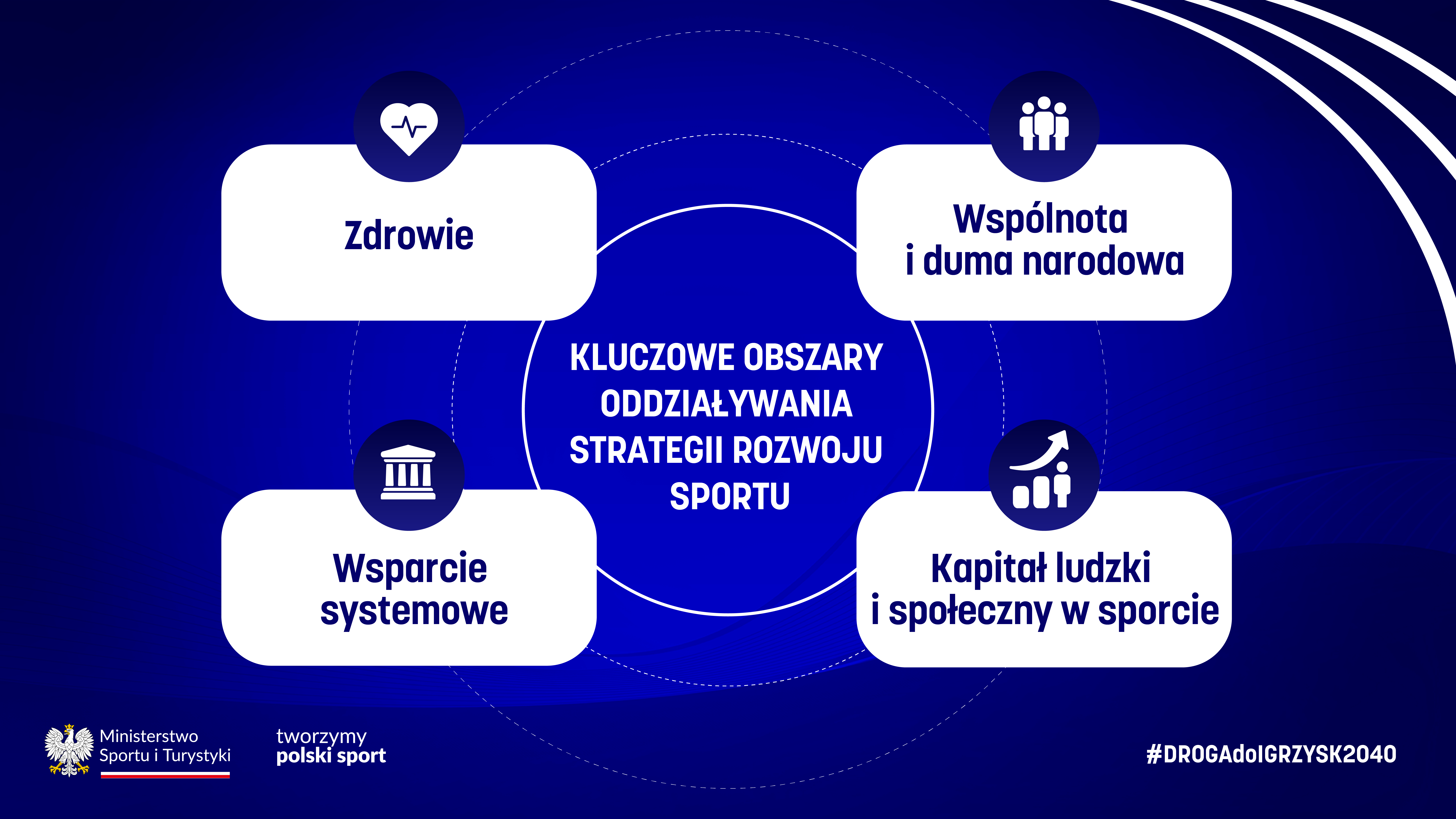 Strategia Rozwoju Polskiego Sportu 2040 to kompleksowy dokument, który ma skupić się na czterech głównych obszarach: zdrowiu, wspólnocie i dumie narodowej, wsparciu systemowym oraz kapitale ludzkim i społecznym w sporcie.