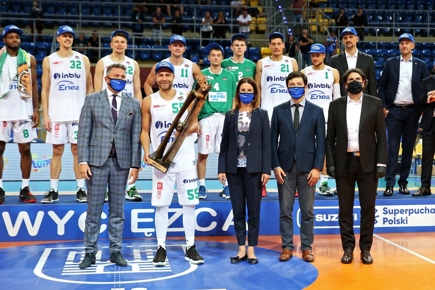 Pamiątkowy puchar dla zwycięzców Suzuki Superpucharu Polski wręczyli: Minister Sportu Danuta Dmowska-Andrzejuk, Dyrektor Działu Marketingu Suzuki Motor Poland Mikołaj Matsumoto oraz Radosław Piesiewicz, Prezes Polskiej Ligi Koszykówki i Polskiego Związku Koszykówki.