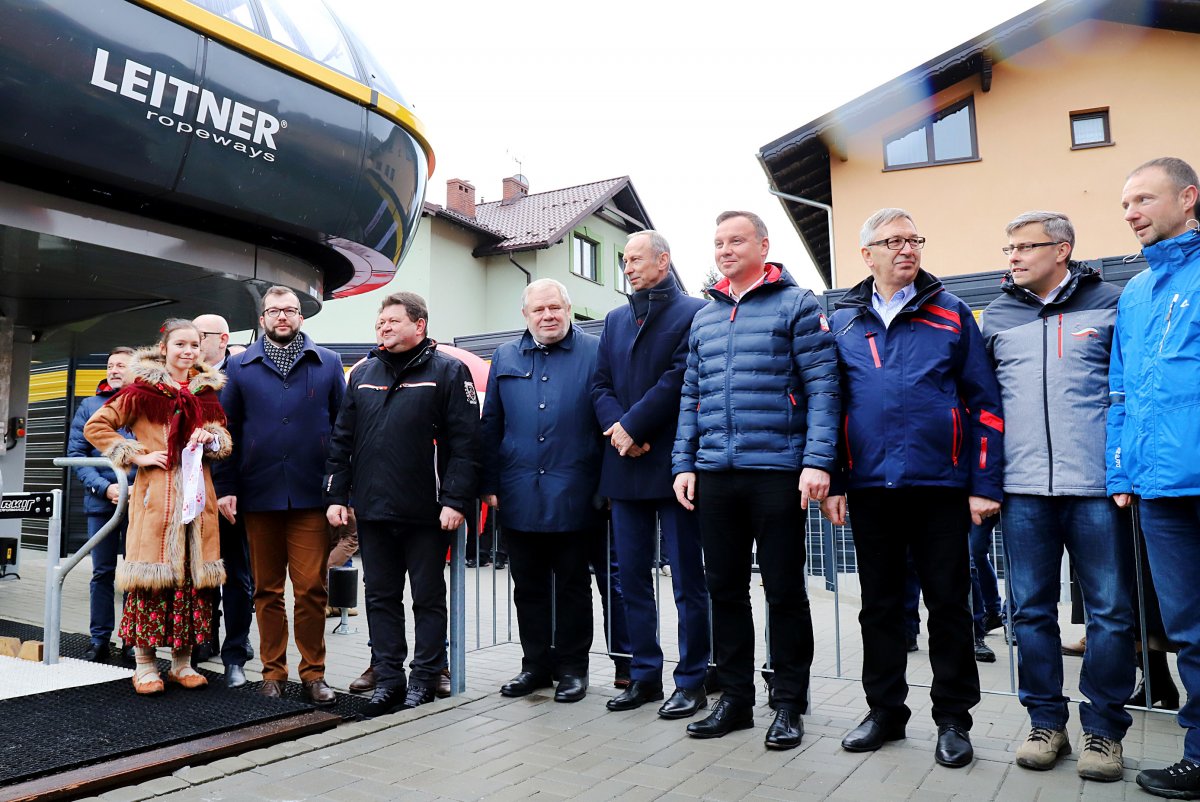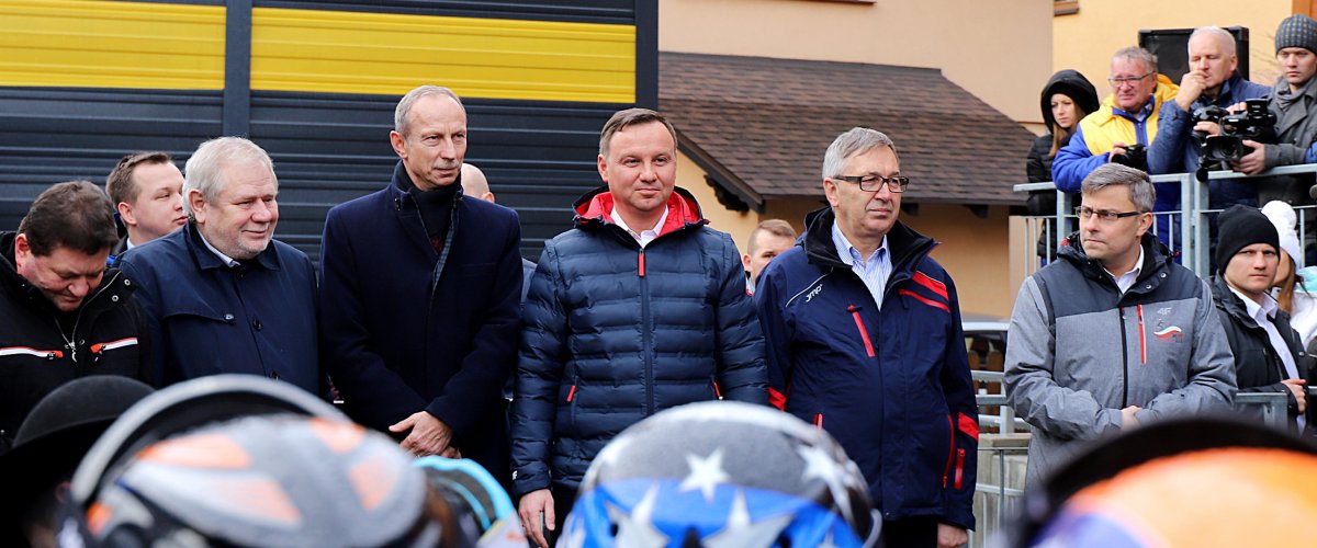 Symboliczne otwarcie kolei kanapowej w Centralnym Ośrodku Sportu w Szczyrku przez Prezydenta RP Andrzeja Dudę z udziałem Wiceministra Jana Widery
