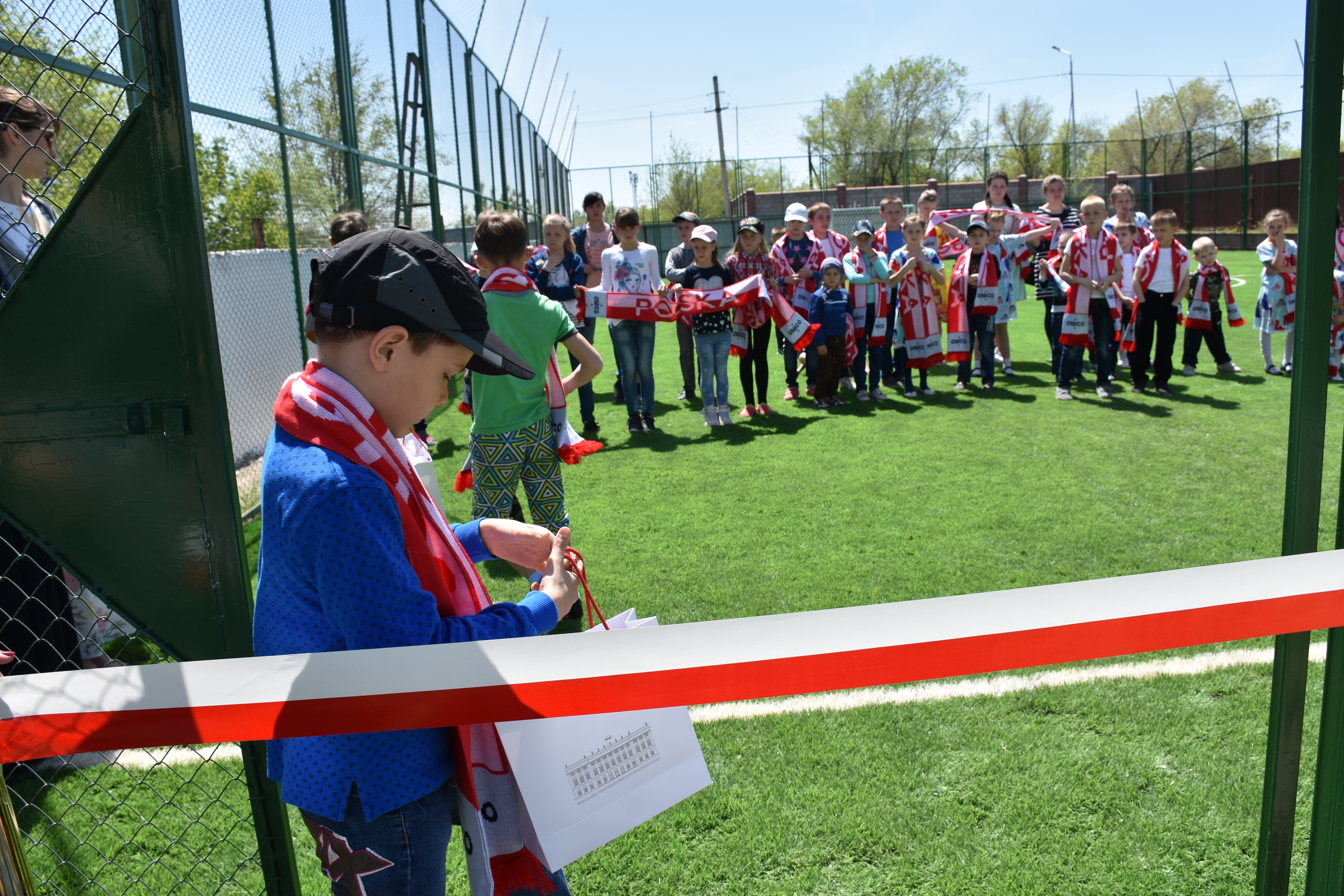 Następnego dnia oficjalnej wizyty w Kazachstanie wiceminister Jarosław Stawiarski wraz z Adamem Kwiatkowskim, Sekretarzem Stanu w Kancelarii Prezydenta RP, Andrzejem Papierzem, Podsekretarzem Stanu w MSZ oraz Radosławem Grukiem, Konsulem Generalnym wziął udział w uroczystości otwarcia boiska piłkarskiego dla dzieci z Domu Dziecka w Kapszagaj w Kazachstanie (na terenie ośrodka przebywa obecnie 65 dzieci różnej narodowości) prowadzonego przez polskiego ks. Artura Zarasia. Warto podkreślić, że boisko powstało z inicjatywy i przy wsparciu wiceministra Stawiarskiego oraz Konsula Generalnego Radosława Gruka. Całość środków przekazały na ten cel polskie firmy – Energa S.A. i ONICO S.A. W uroczystościach brała udział ponad trzydziestoosobowa delegacja z Polski, mieszkający w Kazachstanie Polacy oraz władze miasta Kapszagaj.