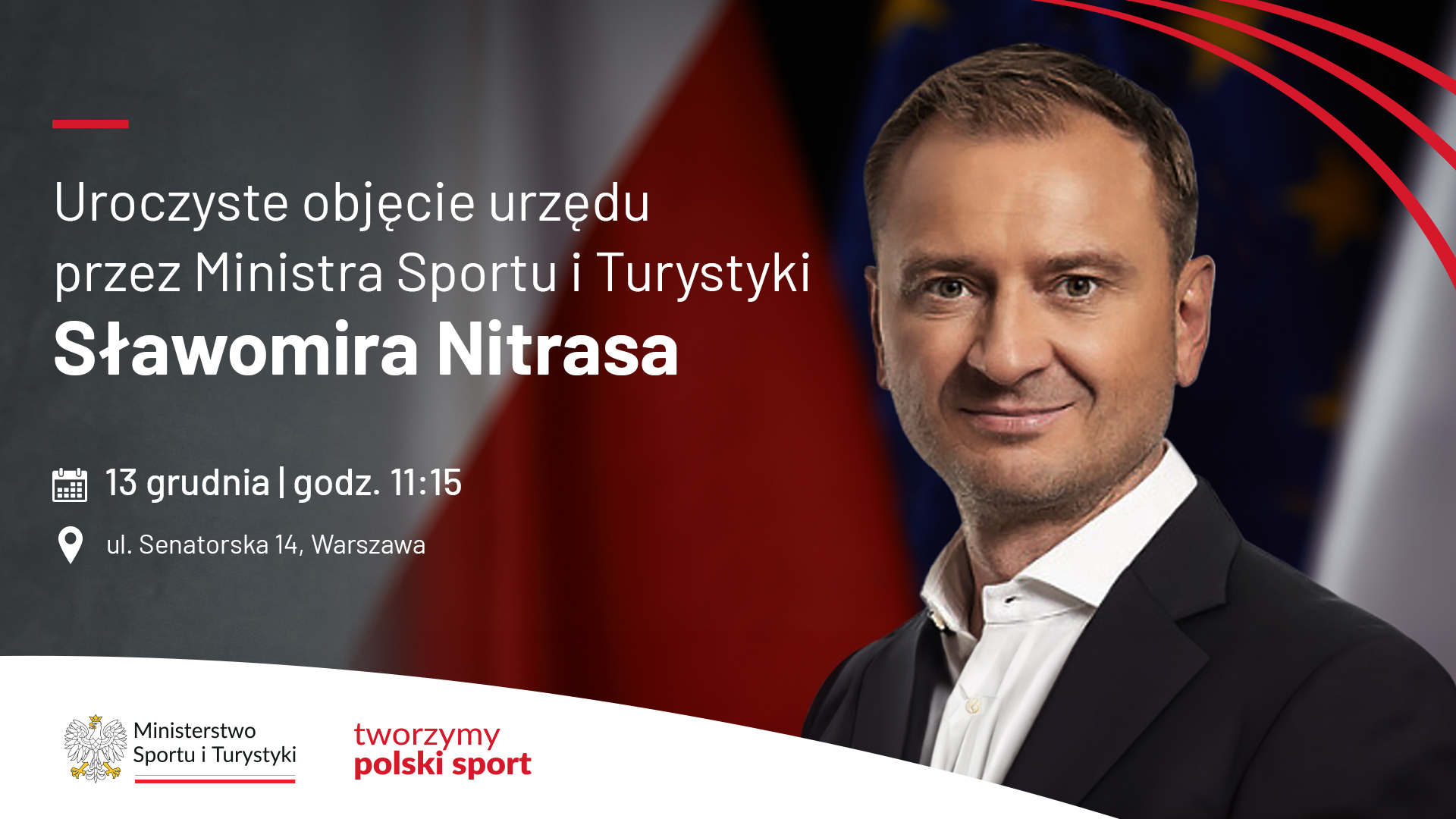 13 grudnia (środa) Pan Sławomir Nitras uroczyście obejmie urząd Ministra Sportu i Turystyki. Media zainteresowane uwiecznieniem tej chwili zapraszamy do siedziby resortu przy ul. Senatorskiej 14 o godz. 11:15. Konferencja prasowa nie jest planowana. Akredytacje nie są wymagane.