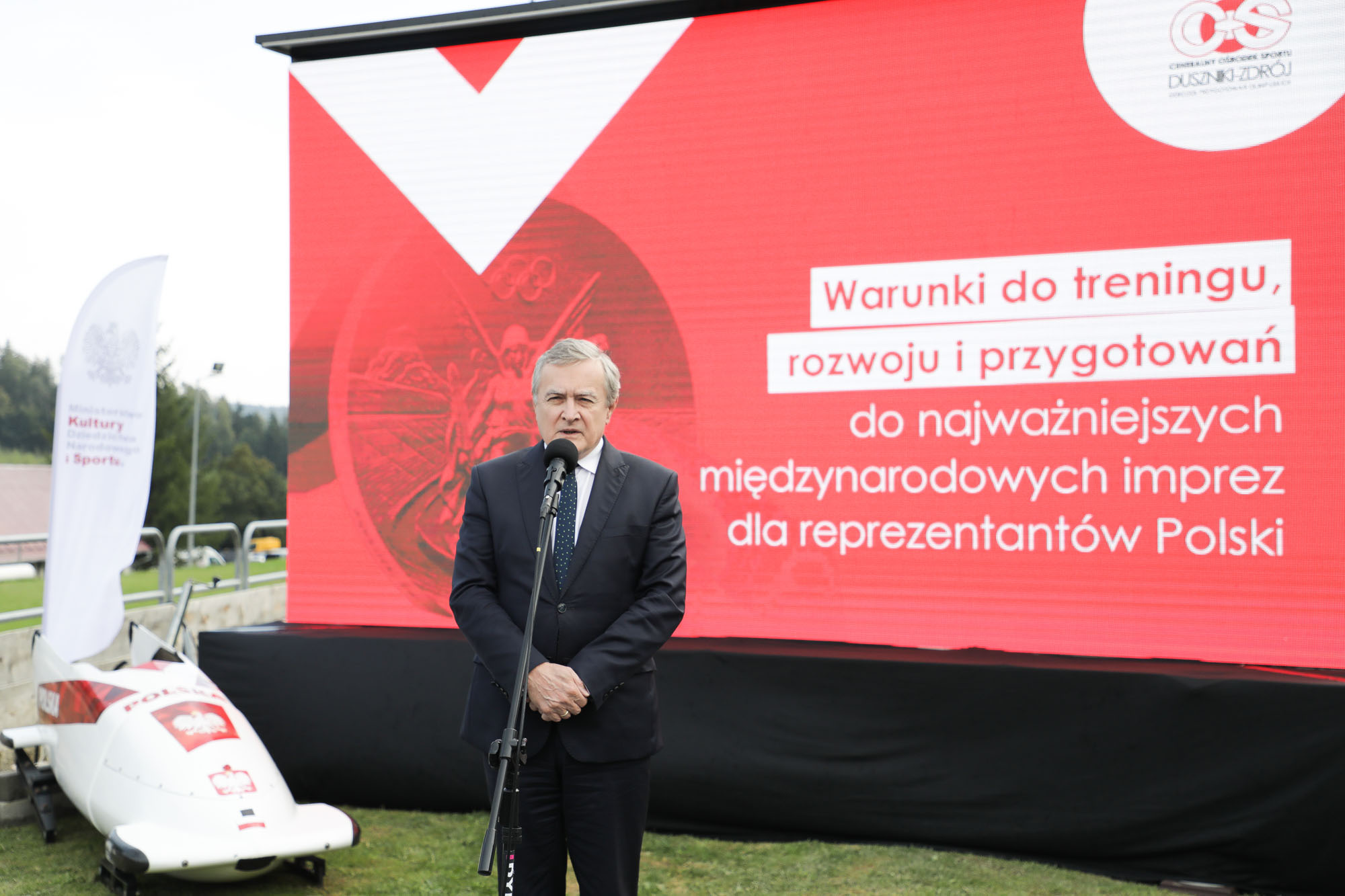 Polski rząd ma świadomość tego, że aby polscy sportowcy osiągali sukcesy na najważniejszych międzynarodowych imprezach, potrzebne jest odpowiednie wsparcie. Cieszę się, że mogę poinformować o zarządzeniu, zgodnie z którym w Dusznikach-Zdroju powstanie już ósmy w Polsce ośrodek COS. Nowelizacja budżetu przyjęta przez rząd zakłada przeznaczenie 59 mln zł na zakup przez COS infrastruktury ośrodka, który znajdzie się na tym terenie. To kolejna strategiczna inwestycja w rozwój polskiego sportu – mówił podczas konferencji prasowej w Tauron Duszniki Arenie wicepremier, minister kultury, dziedzictwa narodowego i sportu prof. Piotr Gliński.