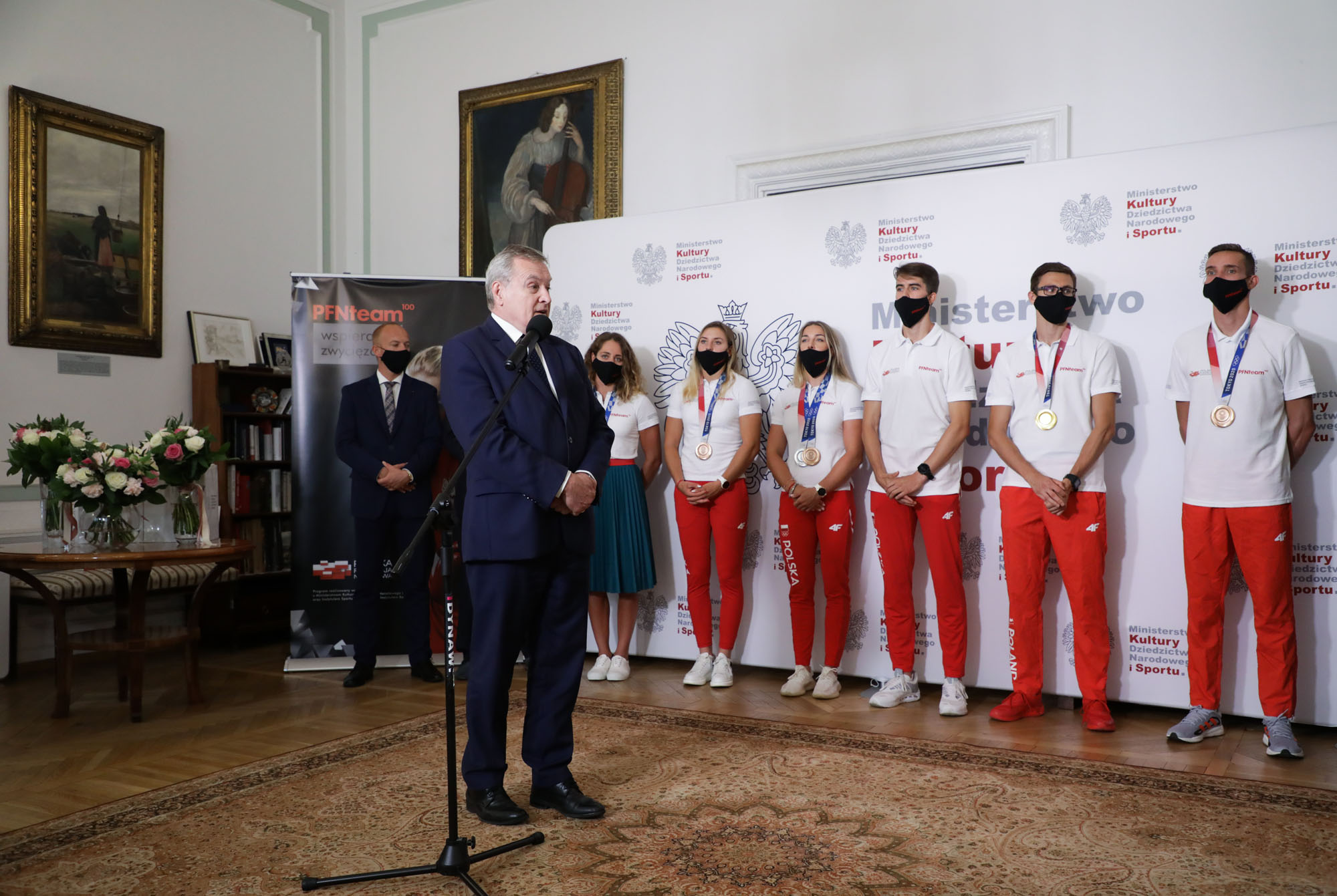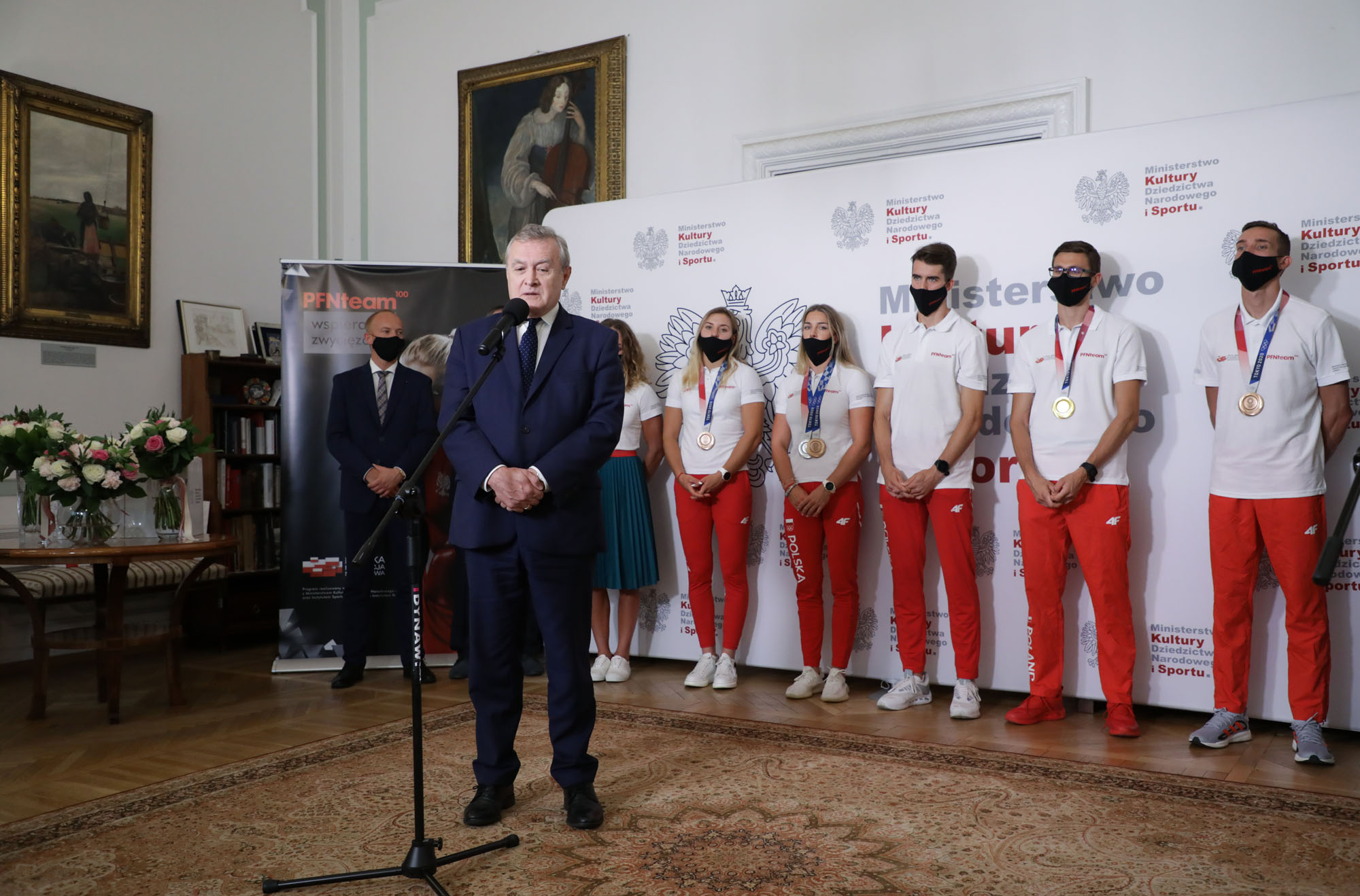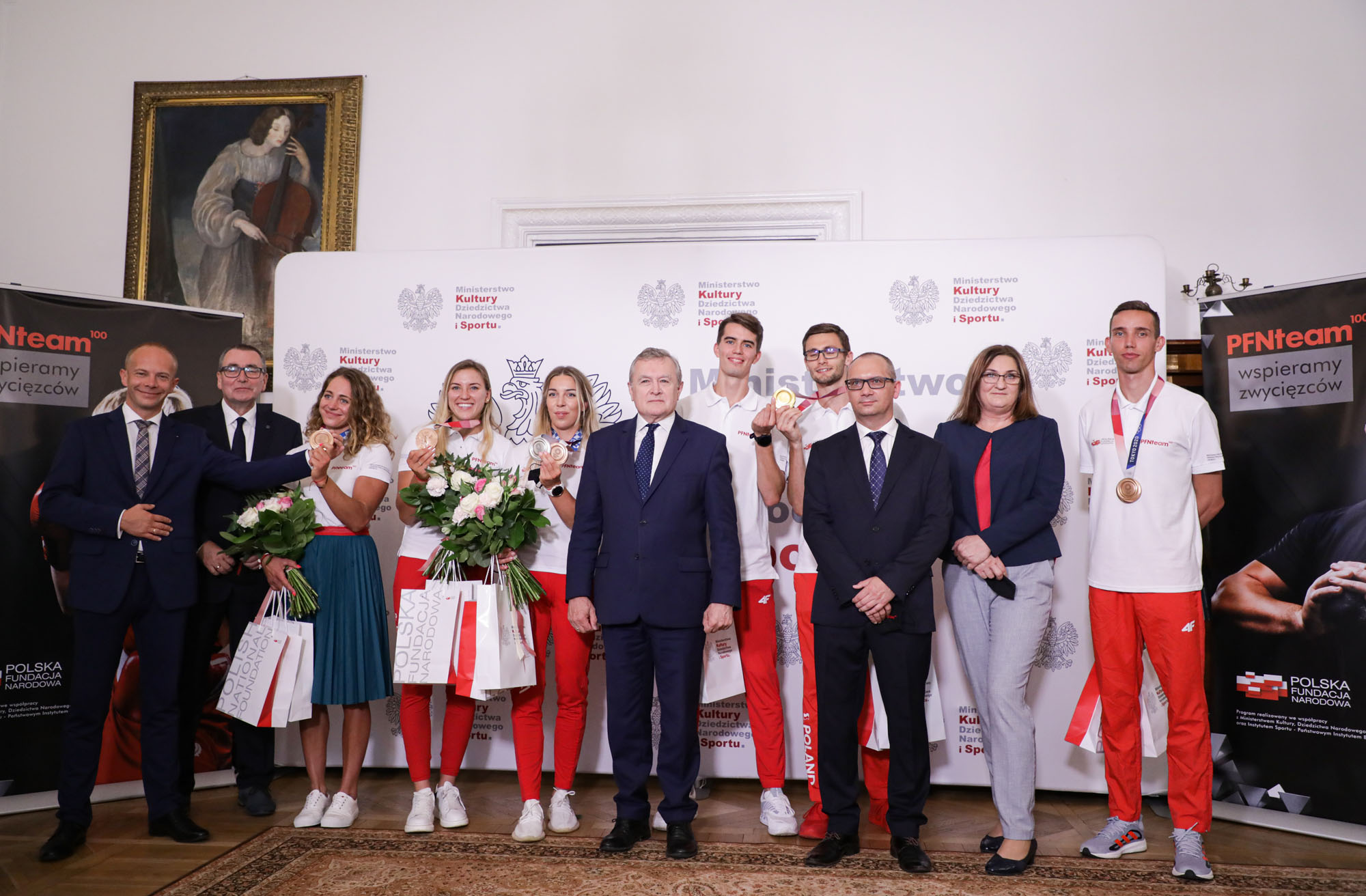 Minister kultury, dziedzictwa narodowego i sportu prof. Piotr Gliński przekazał sportowcom wyrazy uznania i podziękowania za wyniki podczas IO Tokio 2020. Podkreślił, że ta szczególna grupa młodych ludzi została wcześniej dostrzeżona przez dyrekcję Instytutu Sportu i objęta stypendiami programu PFN Team 100.