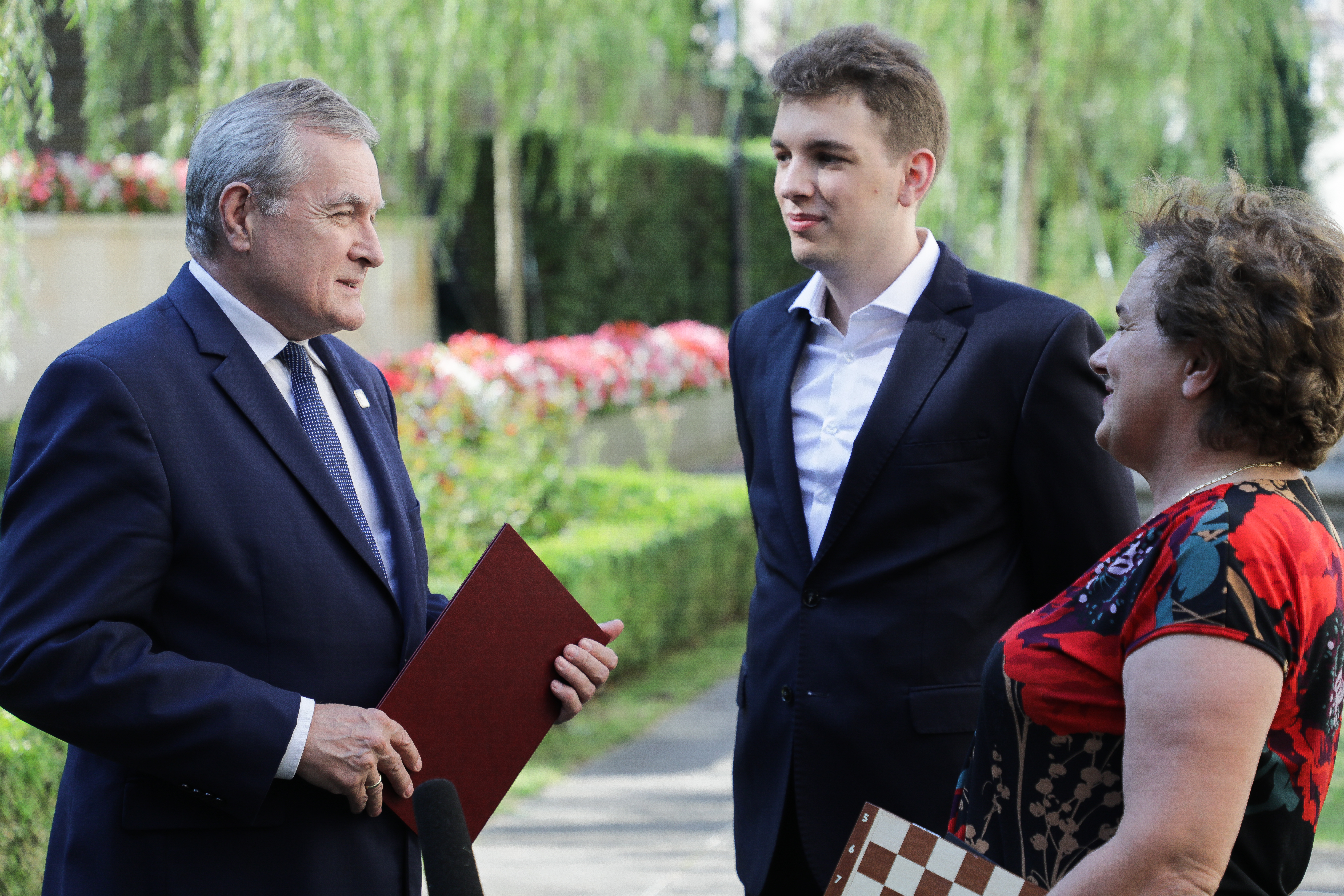 Jako ministerstwo wspieramy Polski Związek Szachowy. Szachy to specyficzna dyscyplina, w której Polska ma wielkie tradycje. Bardzo byśmy chcieli aby za tym sukcesem poszły kolejne. Naszą, ale i Pana rolą, jest popularyzowanie szachów wśród młodych ludzi. Myślę, że z chęcią będzie Pan oddawał w tym celu trochę tej sławy. To nasza wspólna rola, ale i rola mediów, by ukazywać szachy jako dyscyplinę sportową, ale i intelektualną, jako pewien styl życia – dodał minister kultury, dziedzictwa narodowego i sportu podczas spotkania w ogrodach resortu. - Cieszę się, że podpisał Pan umowę sponsoringową z PKN Orlen, dołączając do Orlen Teamu. Gratulacje dla Pana, a także dla Mamy, która stoi za Pana sukcesami, dla trenerów. Sławi Pan Polskę na całym świecie - zakończył wicepremier.
