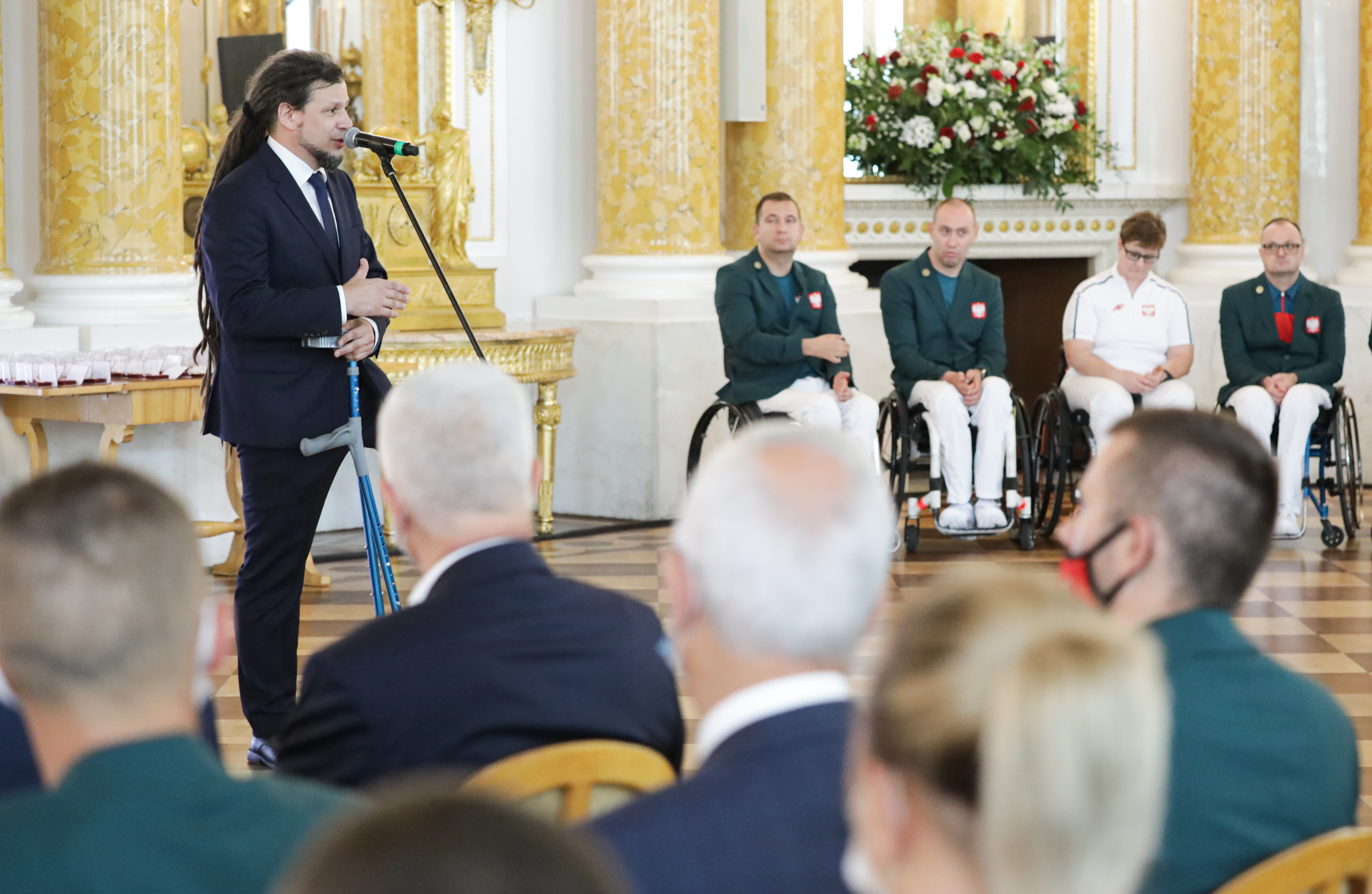 To wielki zaszczyt, że możemy gościć Państwa w Zamku Królewskim w Warszawie. Podczas igrzysk olimpijskich i paraolimpijskich przynieśliście Państwo Polsce sukcesy, które przekładają się na dobro publiczne w zakresie aktywności ruchowej, zdrowia społeczeństwa, za co serdecznie dziękujemy. Odznaczenie „Za Zasługi dla Sportu” jest najwyższym odznaczeniem resortowym. Poszerzyliśmy grupę osób, którym będziemy je wręczać, o czynnych sportowców, ponieważ naturalnym jest, że powinni oni w czasie kariery takie odznaczenia otrzymywać” – powiedział wicepremier, minister kultury, dziedzictwa narodowego i sportu prof. Piotr Gliński podczas uroczystości wręczenia medalistom olimpijskim, paraolimpijskim oraz trenerom i działaczom sportowym Złotych Odznak „Za zasługi dla Sportu”.