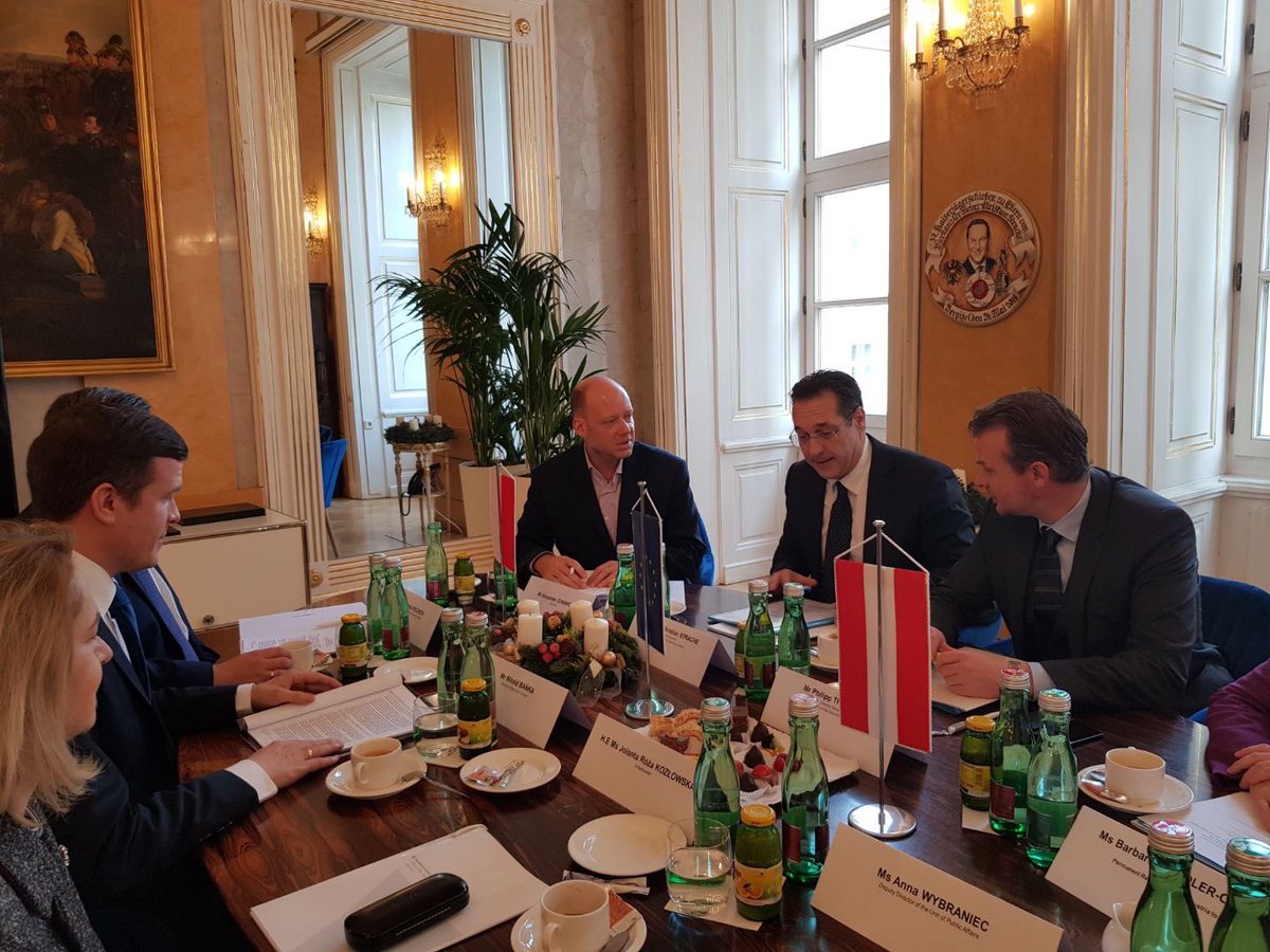 Ostatnim punktem podróży było spotkanie z panem Heinzem-Christianem Strache, Wicekanclerzem, Federalnym Ministrem Służby Cywilnej i Sportu Republiki Austrii. Była to okazja, ażeby pogratulować austriackiej prezydencji realizacji kluczowych priorytetów w obszarze sportu, w tym przyjęcia w minionym tygodniu przez Radę UE w formacie ministrów sportu konkluzji na temat ekonomicznego wymiaru sportu i jego korzyści społeczno-ekonomicznych.