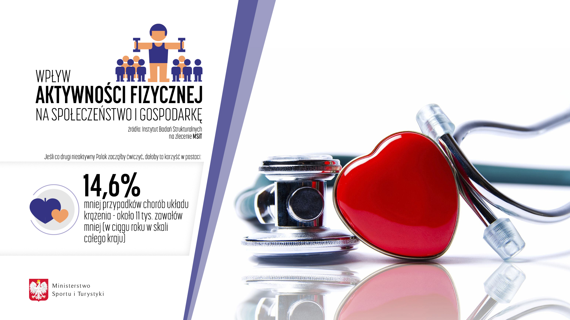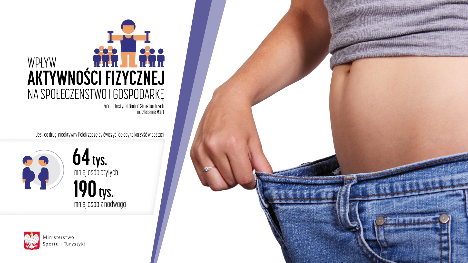 - Zwiększenie aktywności fizycznej przyniosłoby wymierne korzyści społeczne; jeśli co druga nieaktywna fizycznie osoba zaczęłaby ćwiczyć to, m.in.: