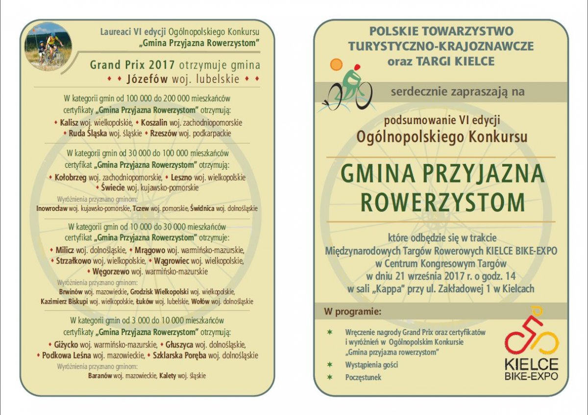 Wręczenie Grand Prix, certyfikatów i wyróżnień oraz nagród od patronów i sponsorów odbędzie się w dniu 21 września 2017 roku podczas 8. edycji Międzynarodowych Targów Rowerowych Kielce Bike-Expo.