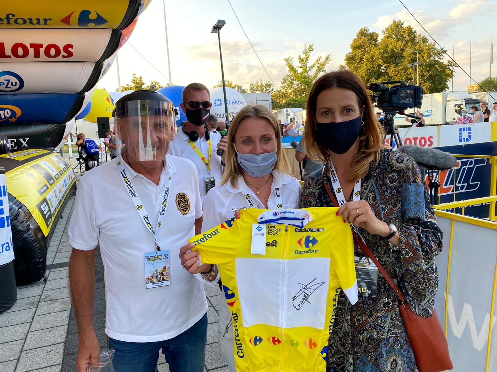 Minister Sportu Danuta Dmowska-Andrzejuk odwiedziła w Krakowie kolarską Reprezentację Polski oraz spotkała się z przedstawicielami organizatora wyścigu, w tym m.in. z Czesławem Langiem, dyrektorem generalnym Lang Team, polskim kolarzem torowym i szosowym.