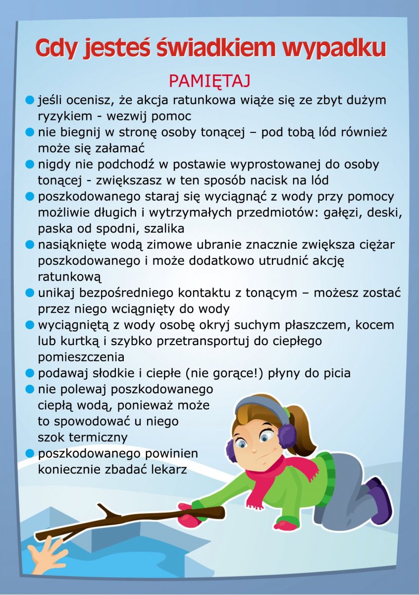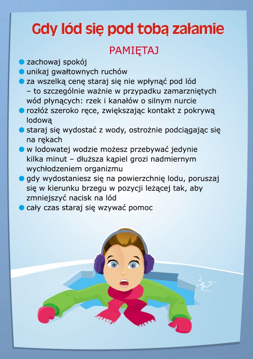 Zamieszczone poniżej materiały edukacyjno-informacyjne stanowią pomoc dydaktyczną w ramach zajęć szkolnych na temat zagrożeń związanych z przebywaniem na zamarzniętych rzekach, stawach i jeziorach.
