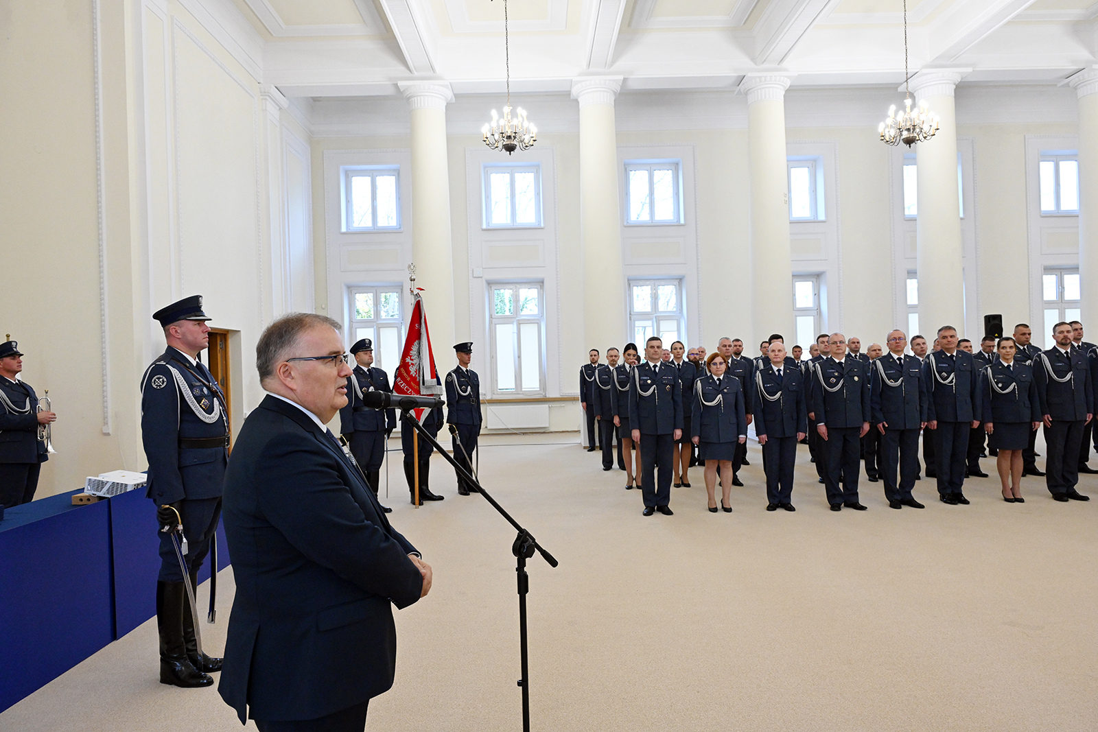Dyrektor Generalny Służby Więziennej gen. insp. Jacek Kitliński przypomniał o korzeniach Służby Więziennej z początków odradzającego się po zaborach państwa polskiego. – Przyjęte w okresie międzywojnia przepisy prawa karnego i rozwiązania ustawowe zostały ocenione jako jedne z najnowocześniejszych w Europie. Więziennictwo zaczęło się dynamicznie rozwijać, a funkcjonariusze Straży Więziennej, dzięki wysokim morale, wykształceniu i gotowości do poświęceń, należeli do elity narodu – mówił generał Kitliński. Dodał, że współcześnie Służba Więzienna to formacja profesjonalna, odpowiedzialna i rzetelna, a swoją codzienną pracą i służbą umacnia niepodległość i znaczenie państwa polskiego.
