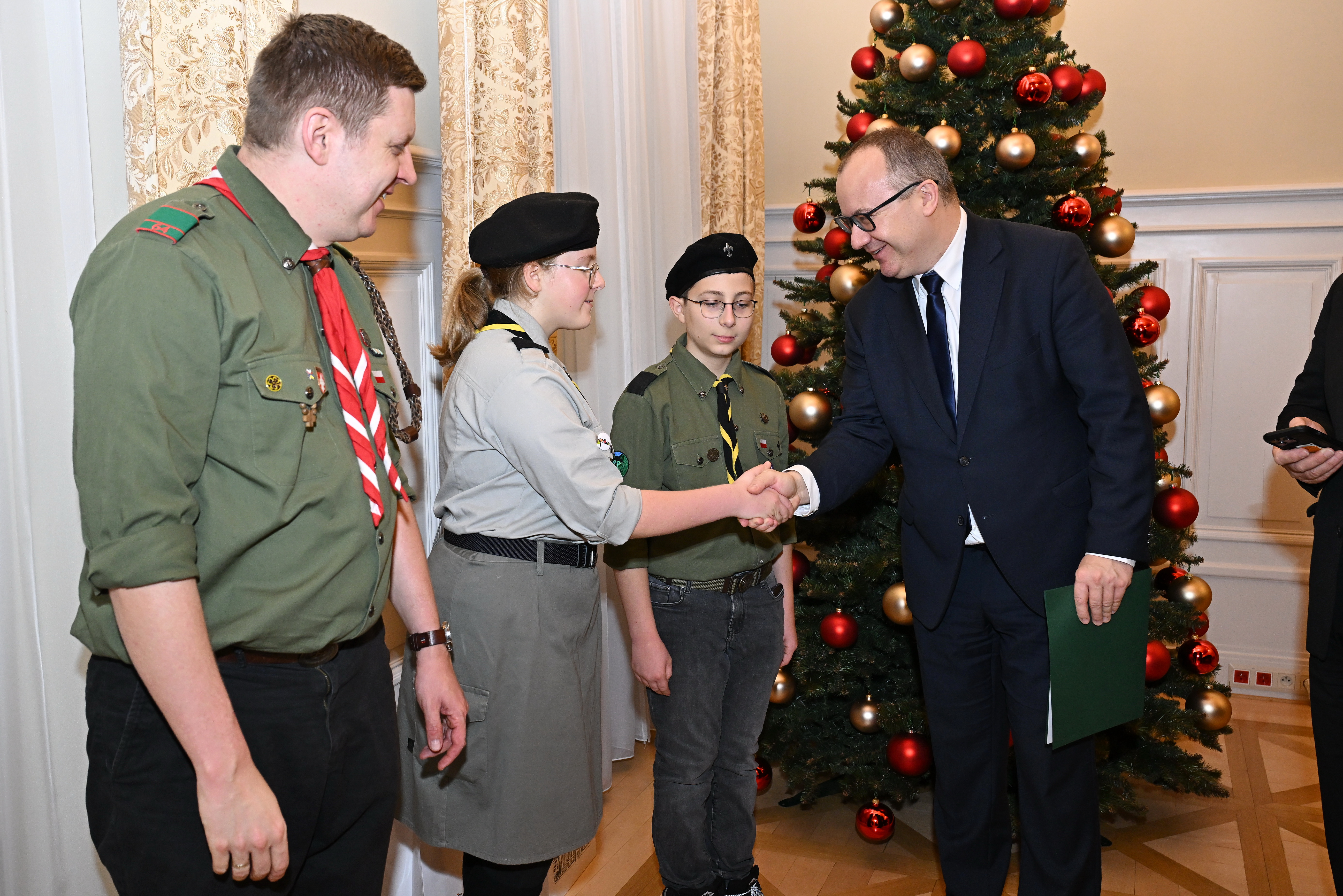 Minister Sprawiedliwości Prokurator Generalny Adam Bodnar złożył harcerzom życzenia świąteczne oraz podziękował za kontynuowanie pięknej inicjatywy, która w Polsce jest organizowana od 1991 r. W uroczystości uczestniczyli również przedstawiciele kierownictwa resortu: Zuzanna Rudzińska-Bluszcz, Maria Ejchart oraz Wojciech Kutyła.