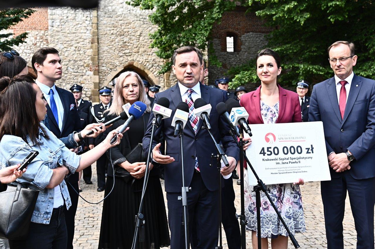 - Postanowiliśmy wyasygnować dodatkowe środki, wcześniej nieprzewidziane w planie Funduszu Sprawiedliwości, na zakup 50 pomp dla Ochotniczych Straży Pożarnych w Małopolsce – powiedział Minister Sprawiedliwości Zbigniew Ziobro na dzisiejszej (7 lipca br.) konferencji prasowej w Krakowie. Oprócz pieniędzy na zakup pomp strażackich, minister przekazał 950 tys. złotych z Funduszu Sprawiedliwości szpitalom w Krakowie.