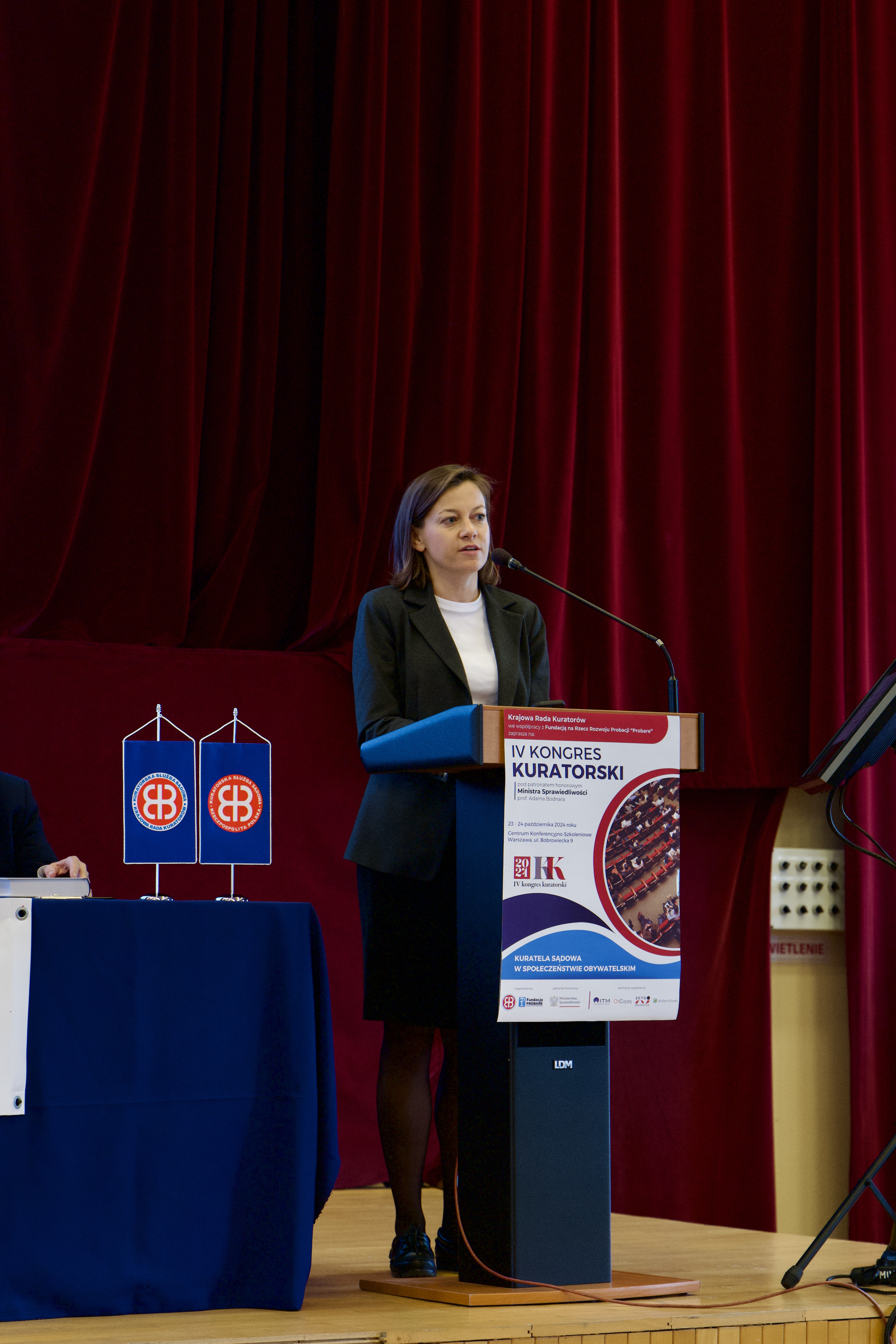 Wiceministra Zuzanna Rudzińska-Bluszcz podczas wystąpienia zwróciła uwagę, jak kluczową rolę pełnią kuratorzy. – To właśnie kuratorzy są pomostem między wymiarem sprawiedliwości, a społeczeństwem. Podkreśliła również, że kuratorzy odgrywają ważną rolę w budowaniu zaufania społecznego do instytucji państwowych oraz w rozwoju współpracy międzyinstytucjonalnej.