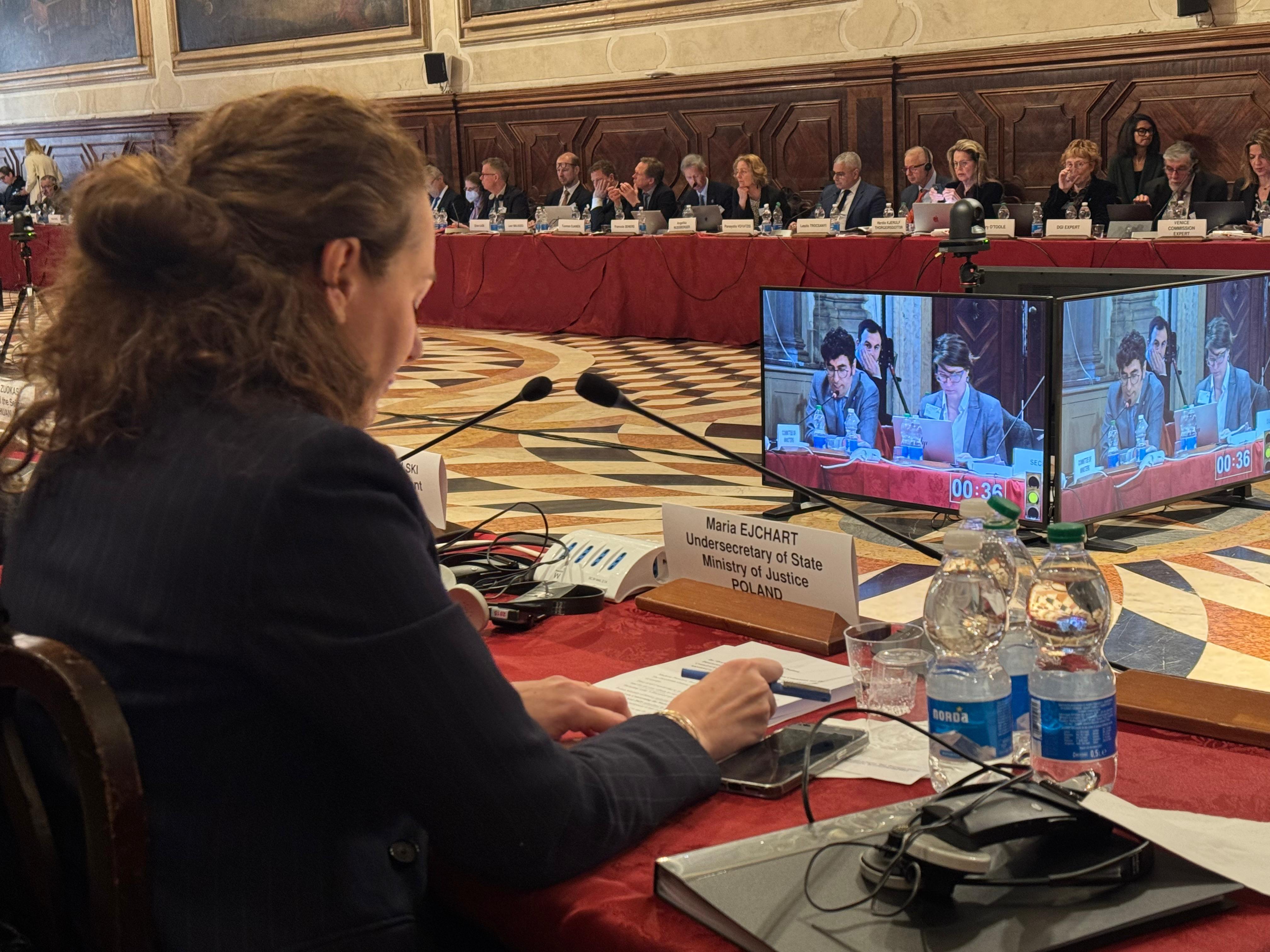 Jesteśmy zdeterminowani, aby rozwiązać systemowy problem polskiego sądownictwa, przywrócić praworządność oraz zapewnić, że przyjmowane rozwiązania będą odpowiadały najwyższym europejskim standardom – podkreśliła Maria Ejchart, Podsekretarz Stanu w Ministerstwie Sprawiedliwości podczas wystąpienia na posiedzeniu plenarnym Komisji Weneckiej.