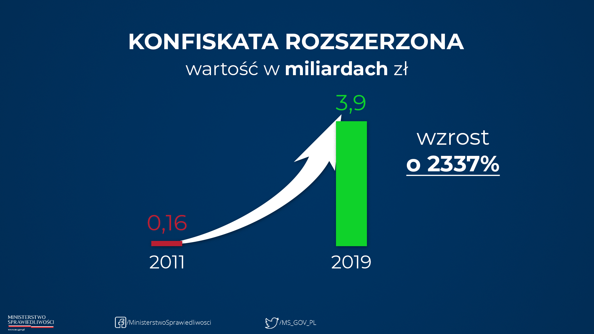 O skali wzrostu wartości zabezpieczonego mienia świadczy wymownie porównanie 2011 r., (Ministrem Sprawiedliwości był wtedy Krzysztof Kwiatkowski), kiedy wartość ta wynosiła 160 mln zł, do 2019 r. – 3,9 mld zł.