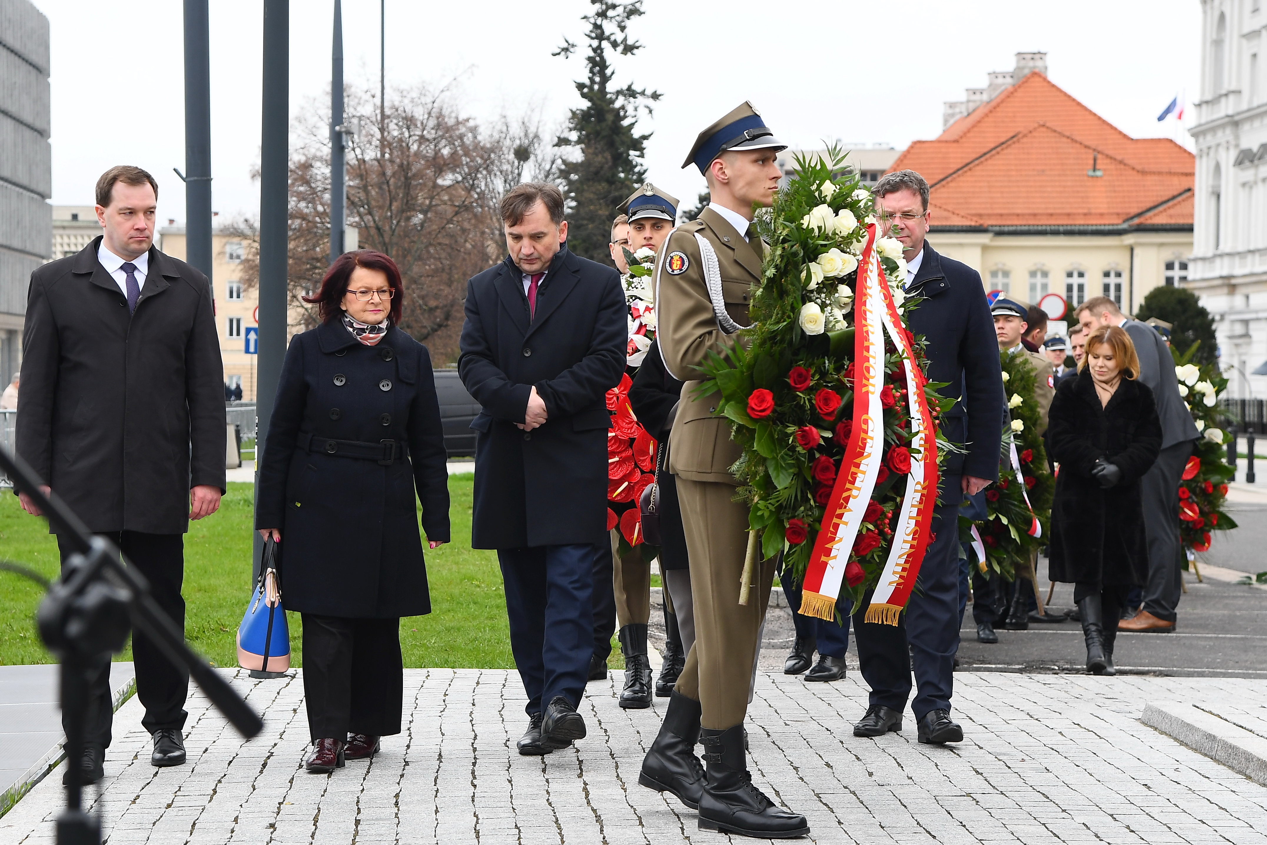 Minister Zbigniew Ziobro i wiceminister sprawiedliwości Piotr Cieplucha złożyli wieńce pod Pomnikiem Ofiar Tragedii Smoleńskiej 2010 roku na Pl. Piłsudskiego i Pomnikiem Prezydenta RP Lecha Kaczyńskiego. Tegoroczne obchody zostały przeniesione na 16 kwietnia, bo w dokładną rocznicę tragedii przypadał Poniedziałek Wielkanocny.